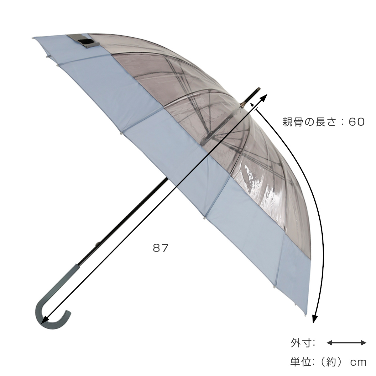 骨が多くても軽い!12本骨クリアアンブレラ