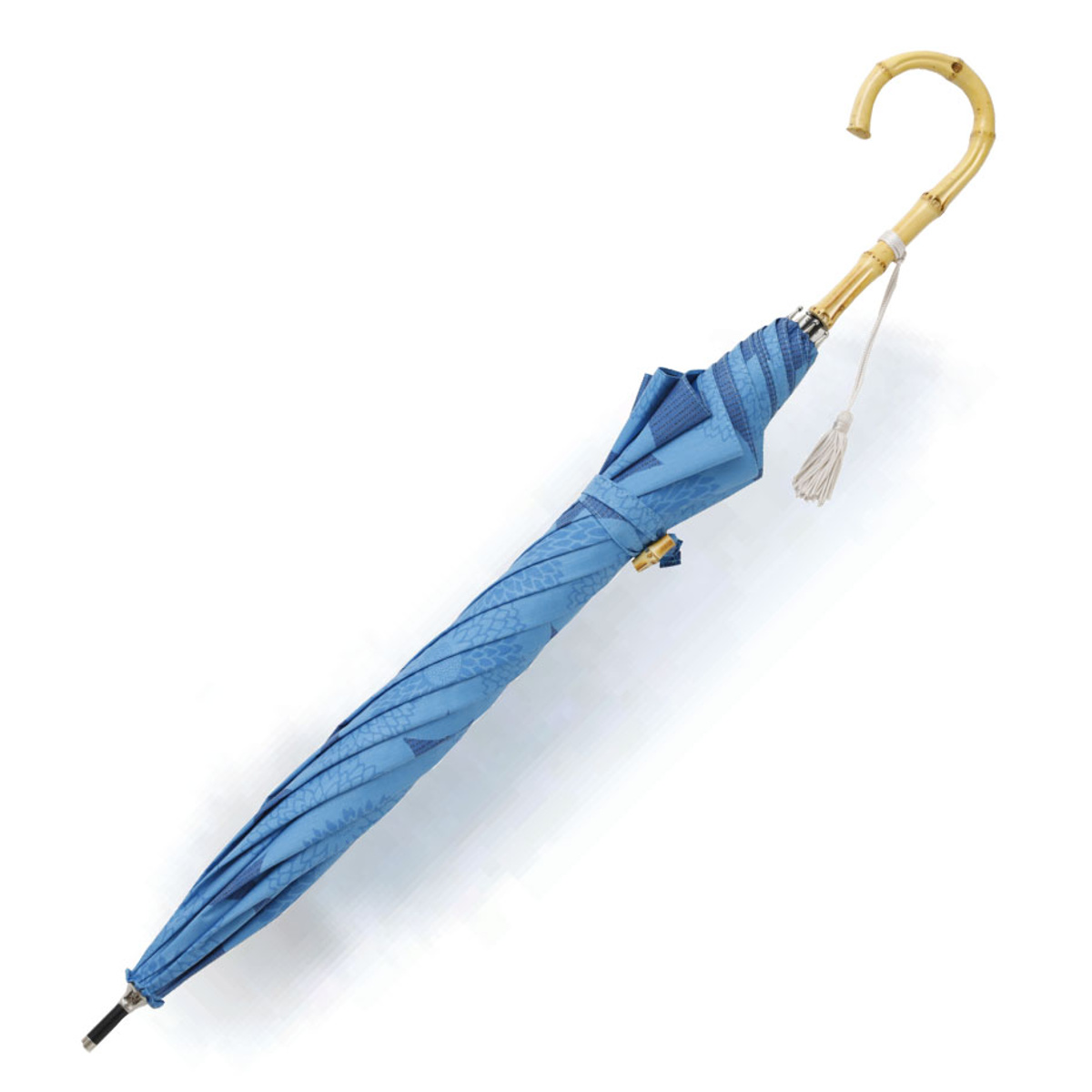 生地に撥水加工が施されており、日差しを遮る日傘としても、雨を防ぐ雨傘としても使用可能です。一般的な雨傘よりもややコンパクトな親骨50cmなので、持ち歩きやすく日常に寄り添います。