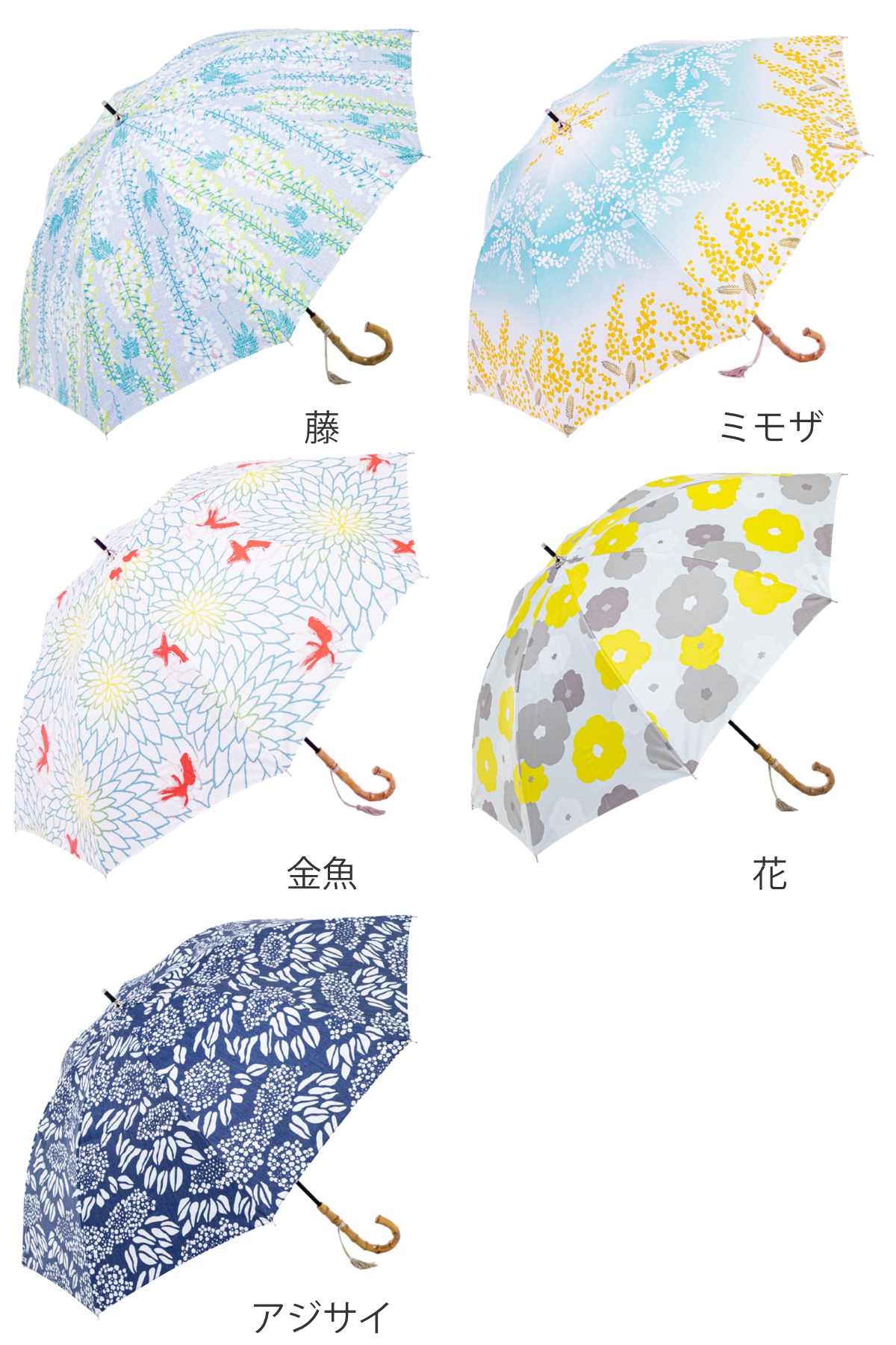 | 種類 | ピンポンマム、菊、ポピー、水風船、藤、ミモザ、金魚、花、アジサイ |
