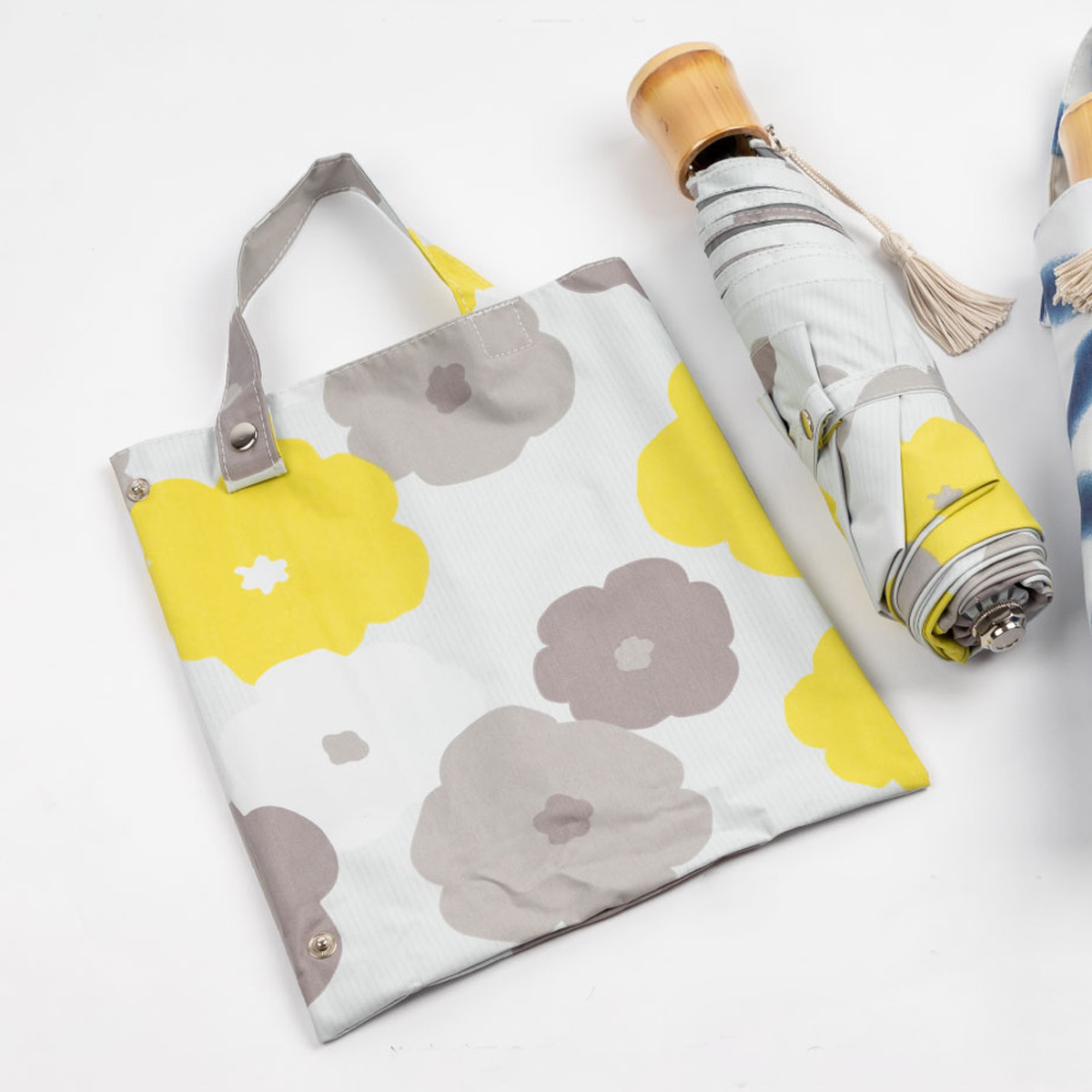 骨をポキポキ折らずに開閉できるので、長傘のように「開いて閉じるだけ」でスムーズに使えます。収納袋はスナップボタンを外すとトートバッグ型になり、傘をキレイにたたまなくても出し入れできるのでストレスフリーです。