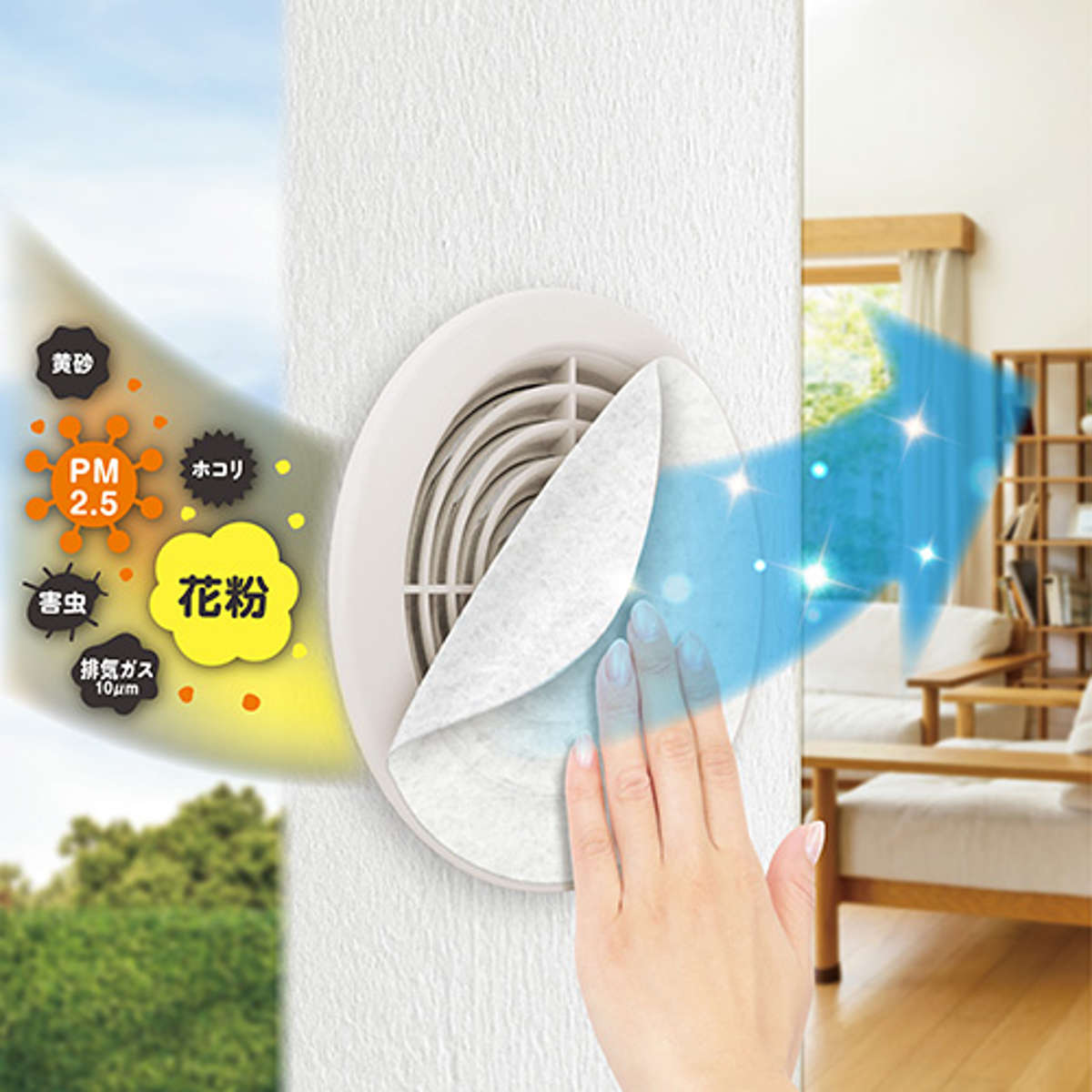 ●空気中のホコリ・花粉・PM2.5などの微粒子を通気口でブロックすることで、室内の空気をより快適に保てます。