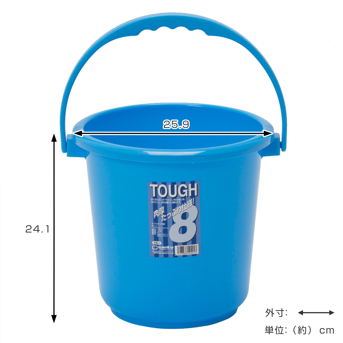 タフな使用にも耐える丈夫なバケツ 8L