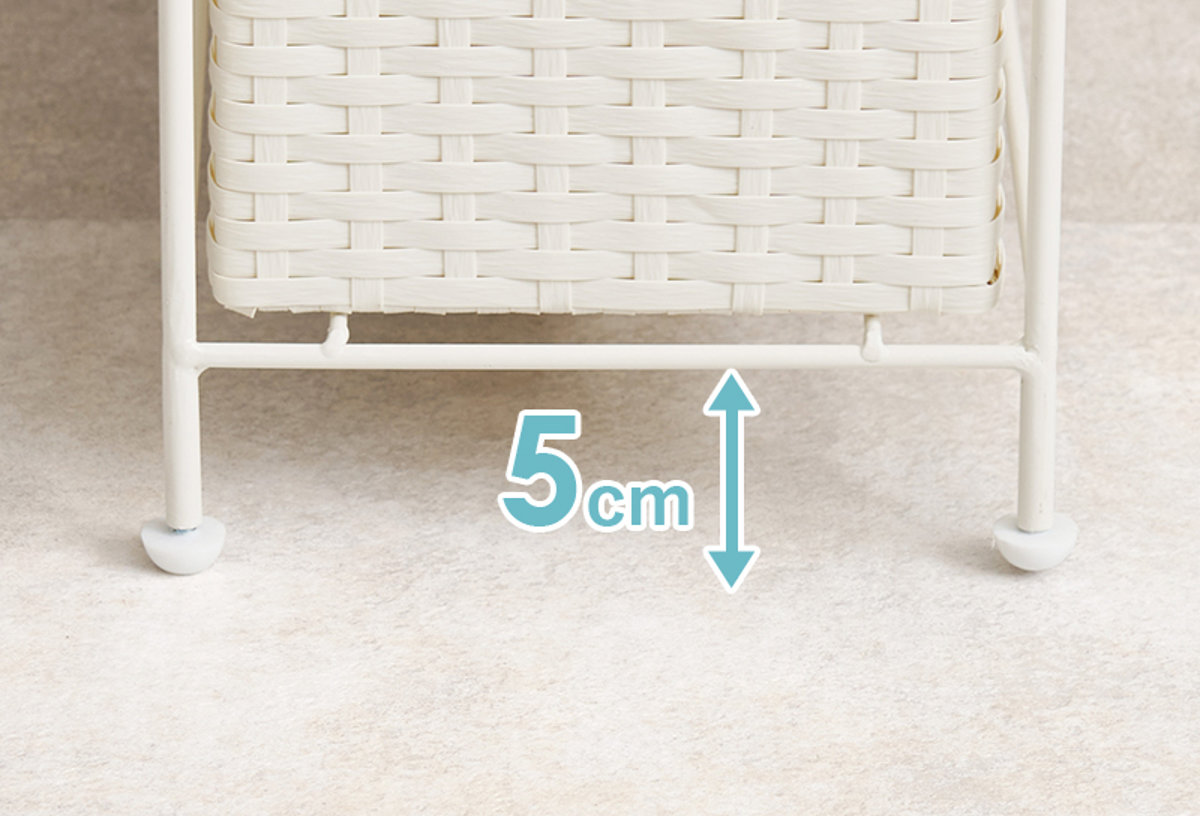 脚部は、一般的な排水ホース(約3~4cm)が楽々またげる高さ5cm。デッドスペースになってしまうホースの上に設置できるので、省スペースです。