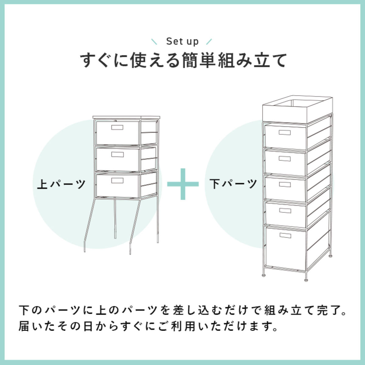下のパーツに上のパーツを取り付けるだけで、すぐにお使いいただけます。ほとんど完成した状態で届くので、組み立て家具や工具を扱うのが苦手な方にもおすすめです。