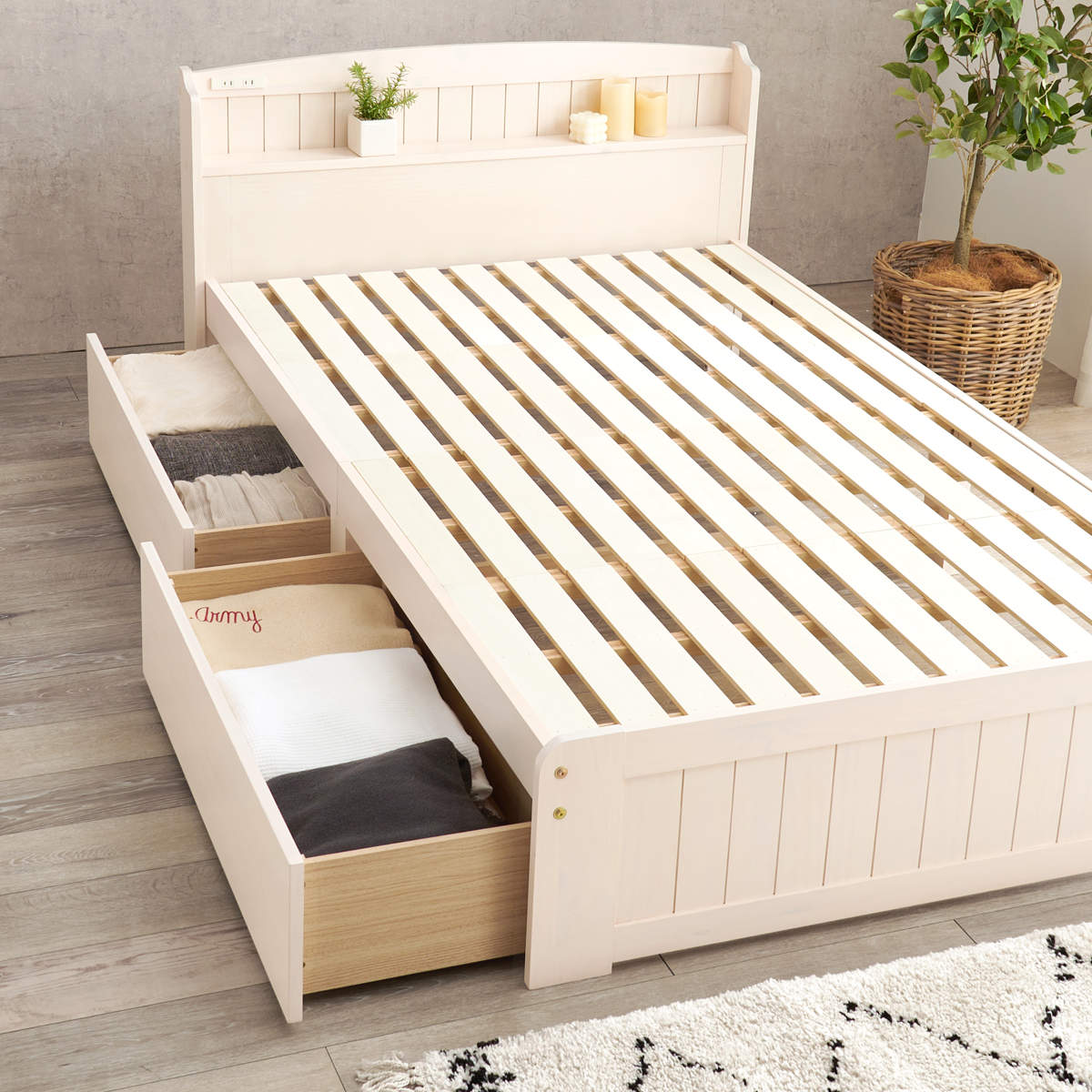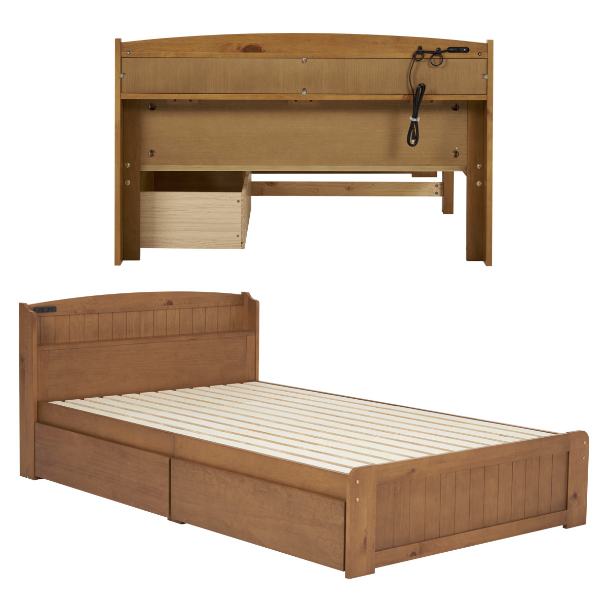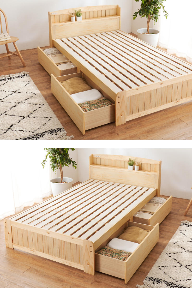 ナチュラルな風合いがお部屋に馴染むベッドフレームとボンネルコイルマットレスのセットです。大容量の引出しが付いているので、スペースに限りがあるワンルームや子供部屋などでも活躍します。天然木の温もりが感じられる柔らかなパイン材を使用し、美しい木目と経年による色の変化も楽しめます。