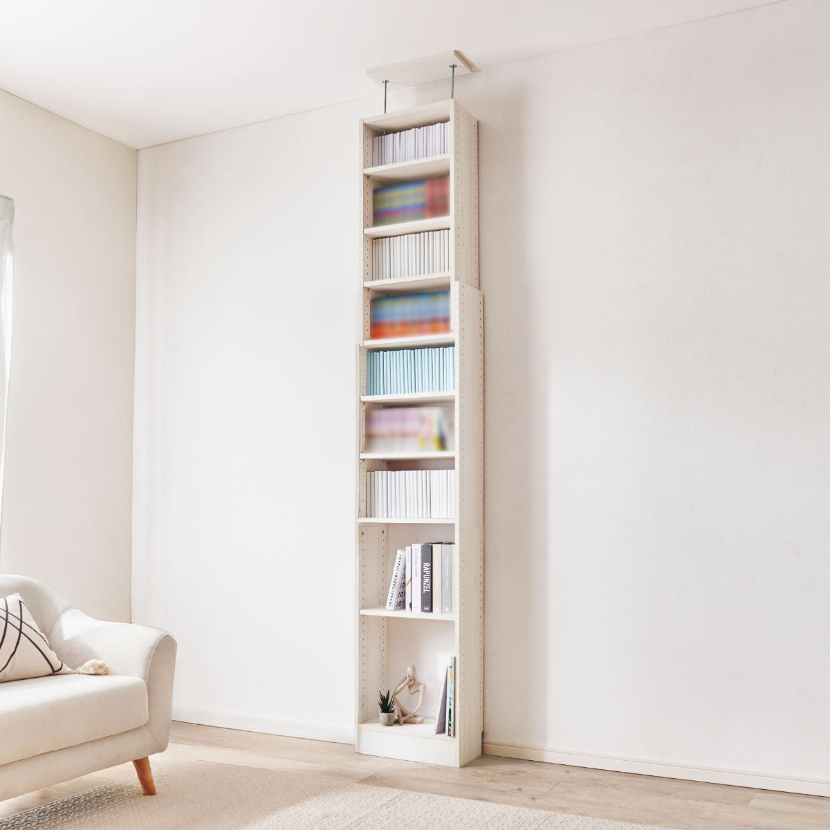 幅45cmのスリムサイズでありながら、コミック約357冊を収納することができます。幅広いサイズの本に対応しているので、青年コミックやDVDなどのコミック以外も一か所にまとめて整理できます。耐荷重は1段あたり20kgで、たっぷりと収納しても安心です。