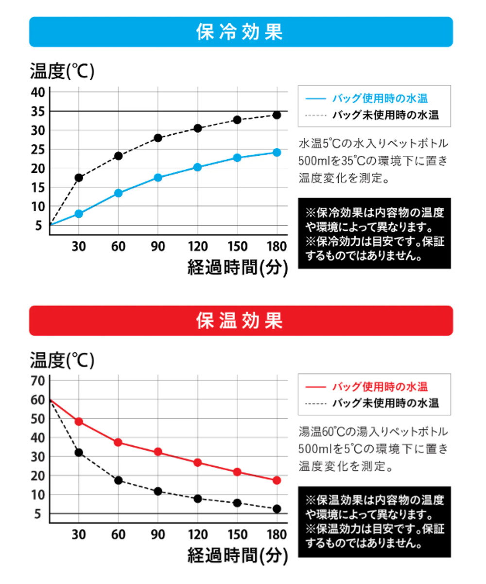 | 保冷効力 | 5度→24.5度以下(3時間) |