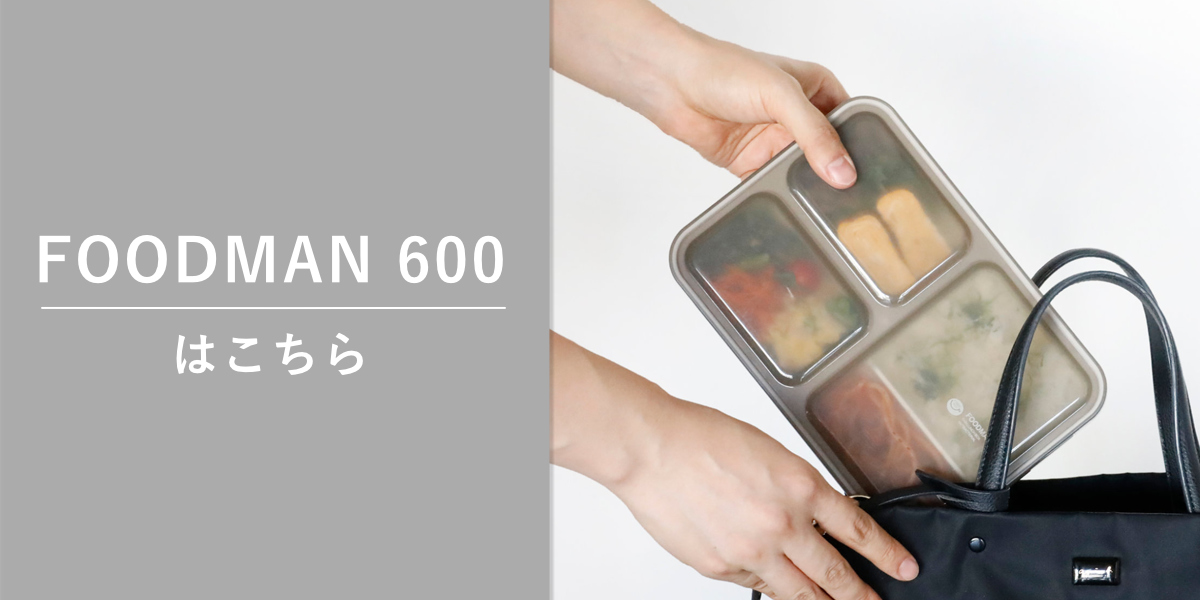フードマンは収納時もかさばらずスッキリ収納でき、一体型の仕切りでワンプレートランチが楽しめるお弁当箱です。4点ロックの蓋とWシーリング構造で汁漏れしにくいのが特徴です。