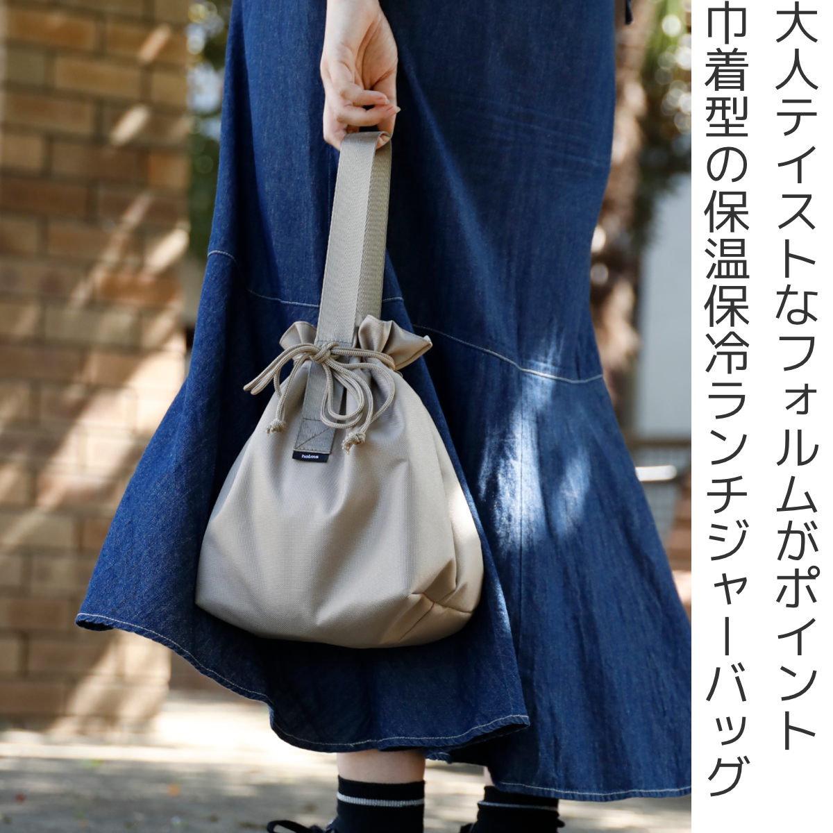 holmsの巾着型の保温・保冷ランチジャーバッグ