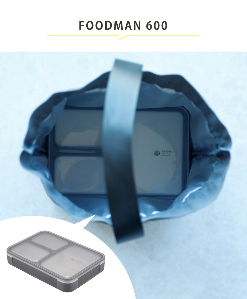 底マチが広く、どんなお弁当箱も持ち運びやすいサイズ感です。底マチが「FOODMAN 600」にピッタリなサイズなので、保冷バッグとしてお使いいただけます。