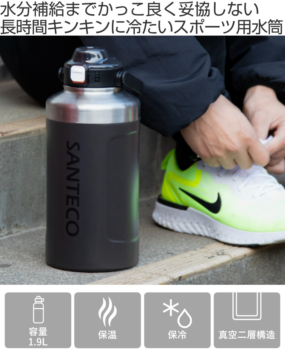 大人っぽいシンプルデザインの1.9Lの大容量スポーツボトルです。見た目はシンプルでスタイリッシュ。中身は頼れる機能がぎっしり。デザイン性も妥協しないスポーツボトルを求めていたあなたにぴったりの一品です。