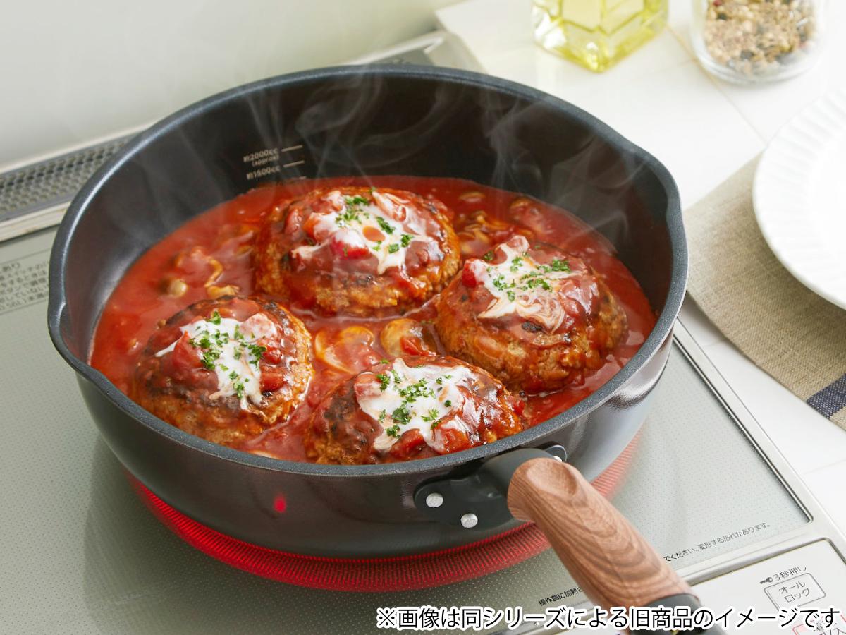 すばやく均一に熱が伝わると人気の「和楽亭」シリーズの深型フライパンです。全体に均等な熱を加えることが可能なので、ムラなく調理できます。