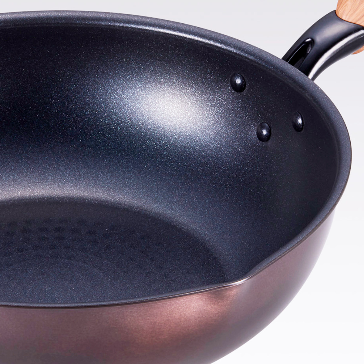 | 材質 | 本体:アルミニウム合金 底部:ステンレス鋼 内面塗装:ふっ素樹脂塗膜加工 外面塗装:耐熱塗装加工 取っ手:フェノール樹脂、シリコーンゴム |