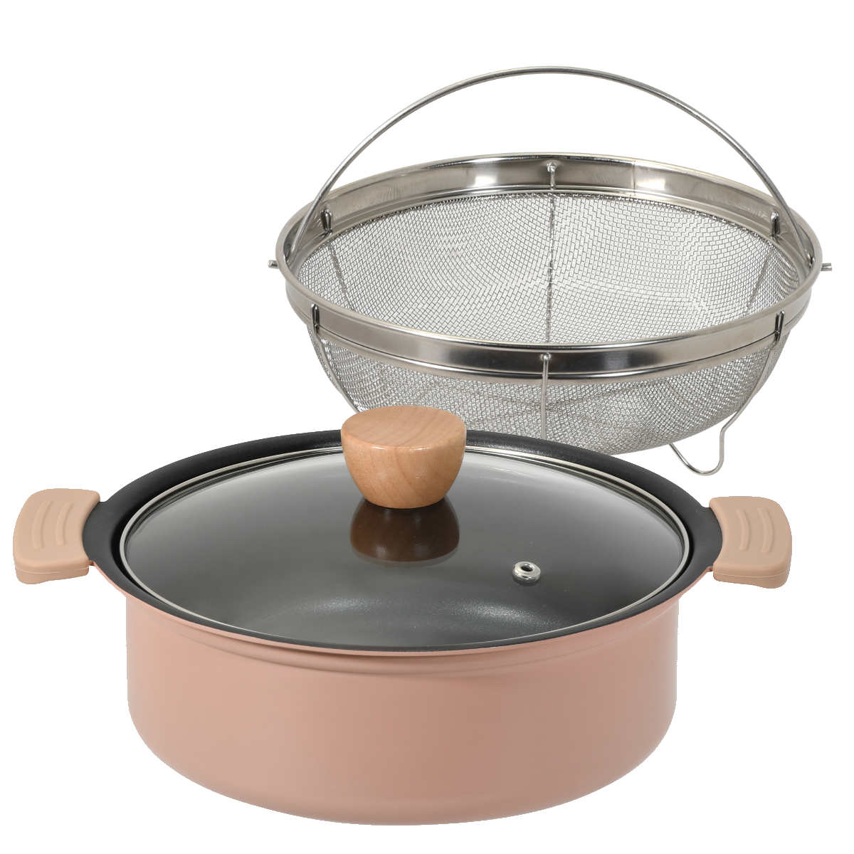 蒸し料理が手軽に作れる蒸しザルが付属した卓上鍋です。冬の鍋料理だけでなく、夏場は蒸し野菜など一年中活躍します。