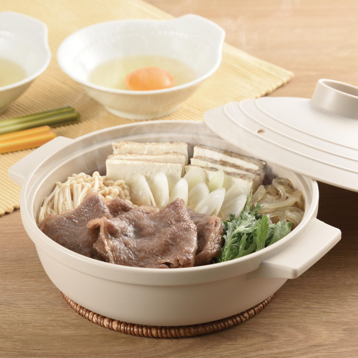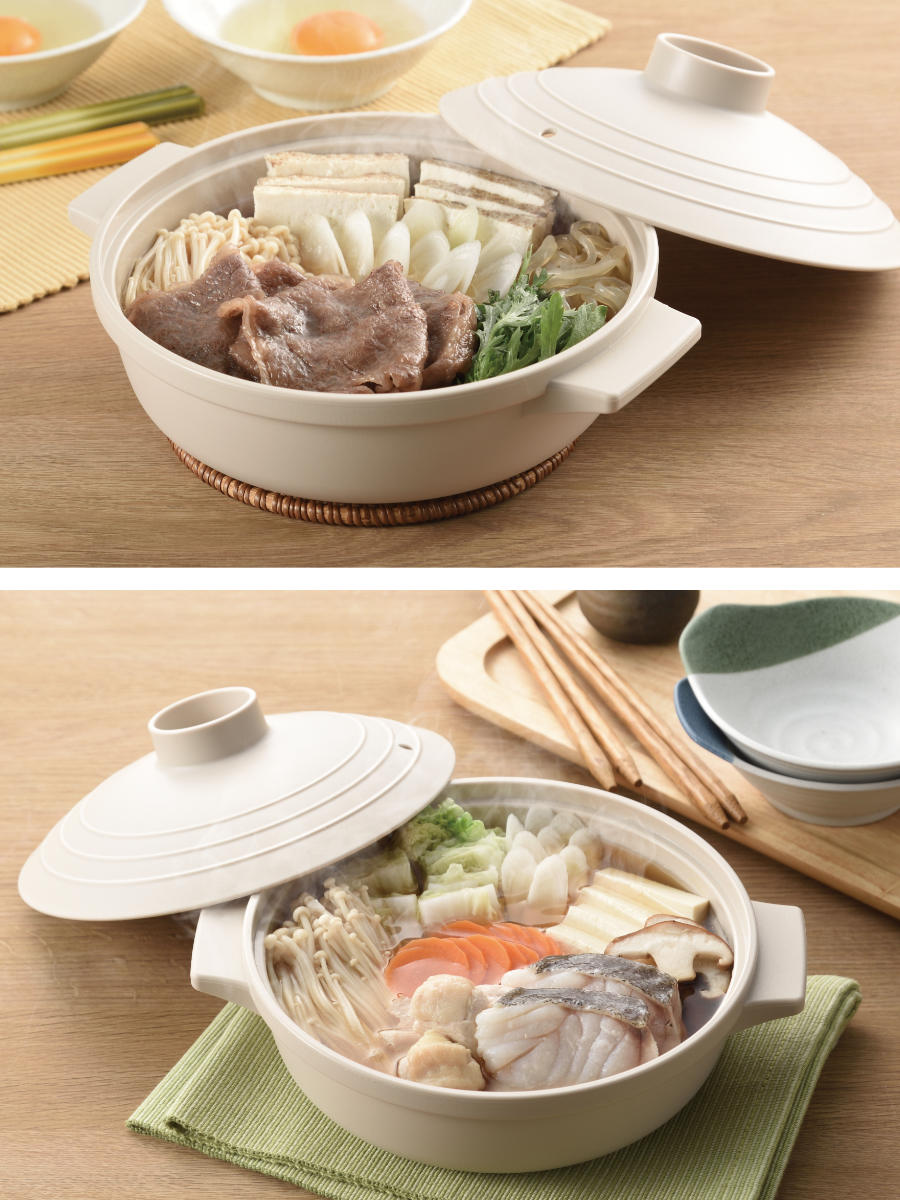 ●1人分のすきやき・寄せ鍋がレンジで簡単に作れる鍋です。