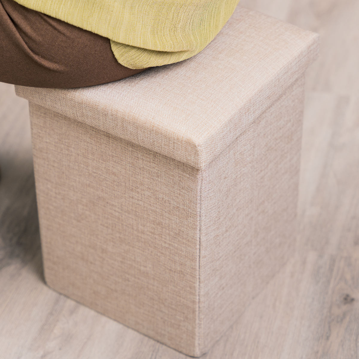 落ち着いたカラーとリラックスできる布地で、リビングなど見えるところに置いていてもお部屋の雰囲気を壊しません。四角い形状は、クローゼットや部屋の角にすき間なく置けるため、スペースを有効活用できます。