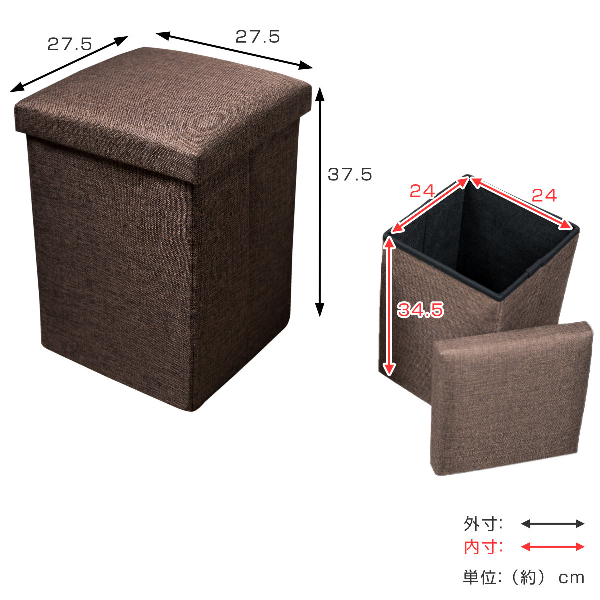 - 外寸:約幅27.5×奥行27.5×高さ37.5cm