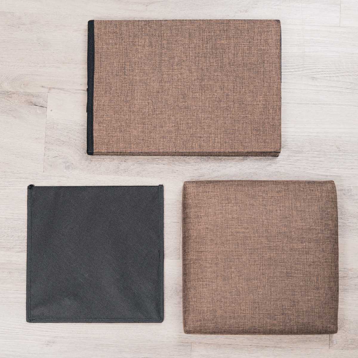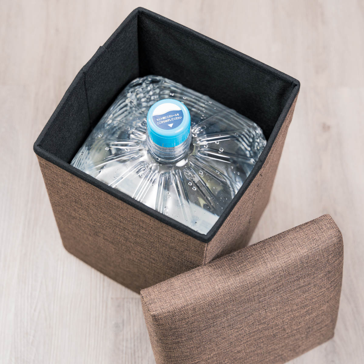 本体を伸ばして、底に台紙を引いて、フタするだけの簡単設計です。使わないときは折りたたんでクローゼットなどにしまっておけば、来客時のスツールとしても活躍します。