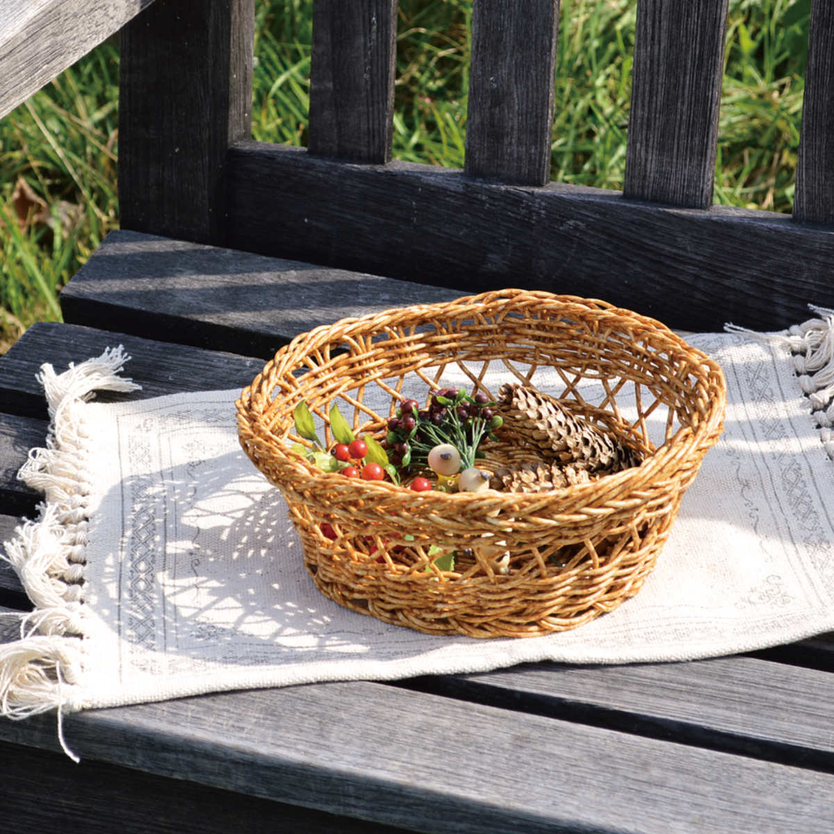 ラタンのような風合いのバスケット ラウンドS