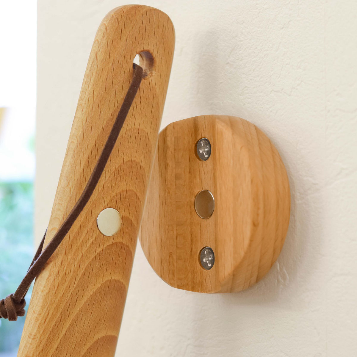 台座に近づけるとマグネットでピタッとくっつく、浮かせて収納できる靴ベラです。使わない時はスマートに収納、使いたい時はサッと手に取ることができ、毎日使うものだからこそ使い心地と動線を考えられたデザインです。