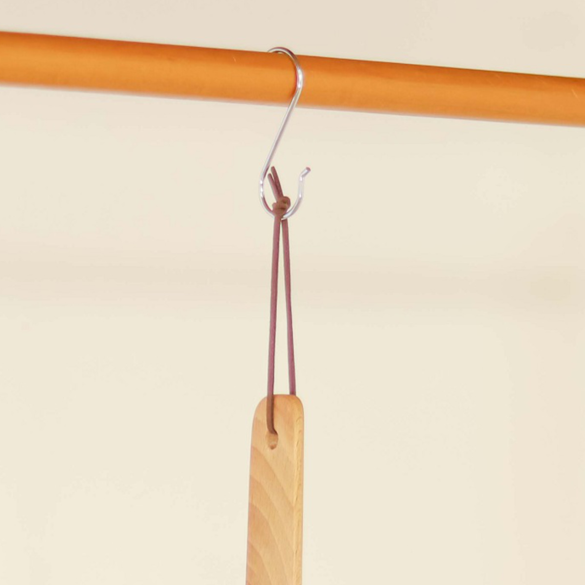 靴ベラの上部にひもが付いていて、シューズボックスの取っ手やコートフック等に掛けて収納することもできます。