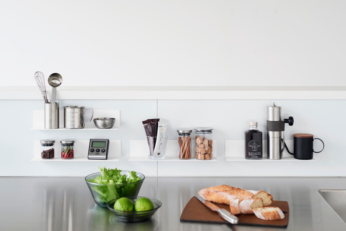 手に取りやすい位置に調味料をまとめて収納できます。レイアウトが自由にでき、キッチンスペースを有効活用できます。