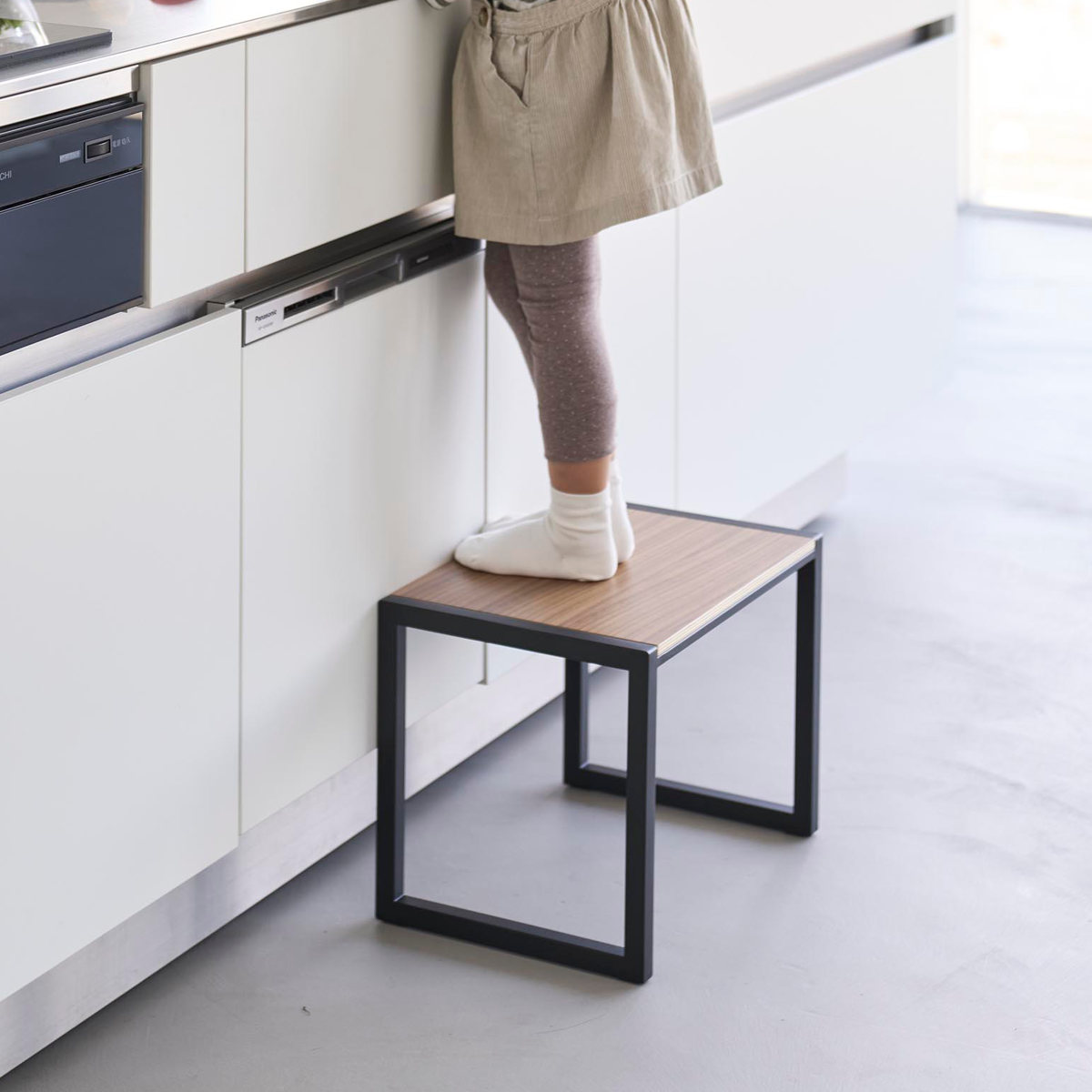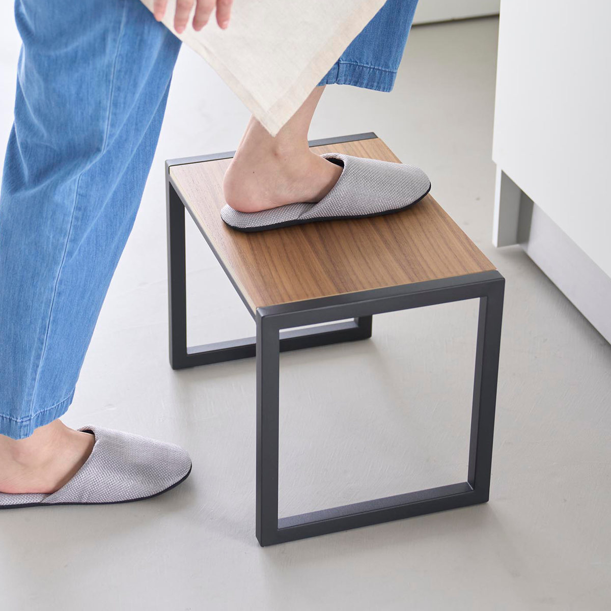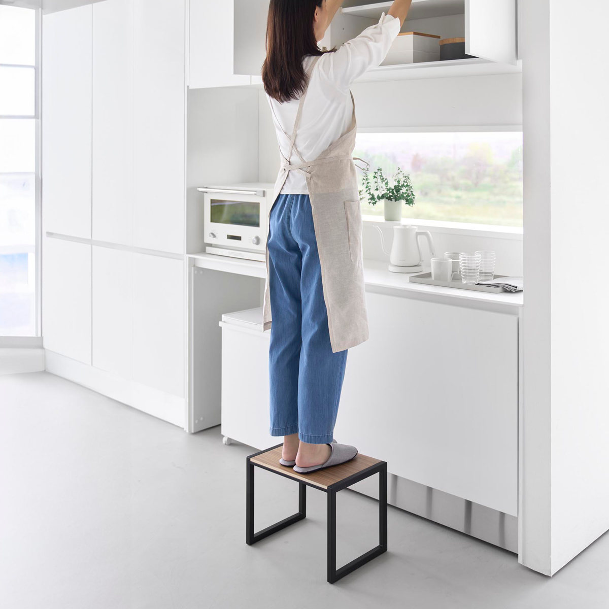 インテリアに馴染むスチールと木の組み合わせが美しい踏み台です。手の届きにくい吊り戸棚への収納や電球交換など高い位置での作業がしやすい高さ30cmです。足を乗せられるスペースが広く安定感があるので安心して使用できます。