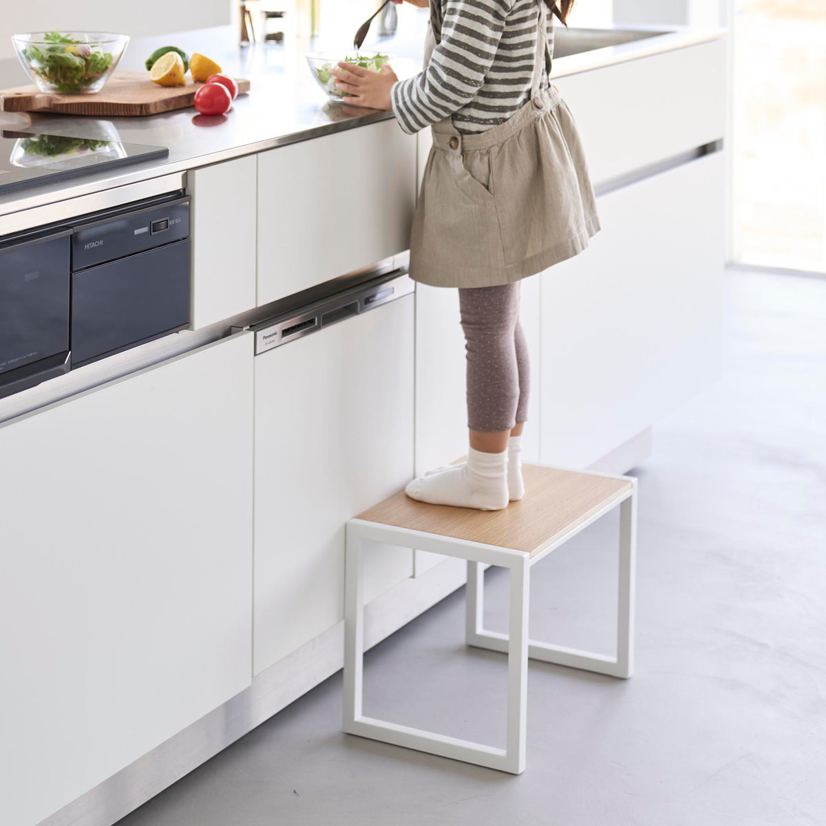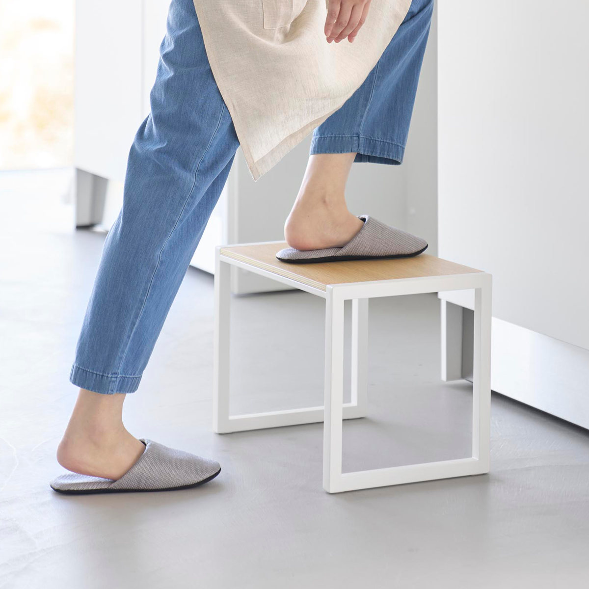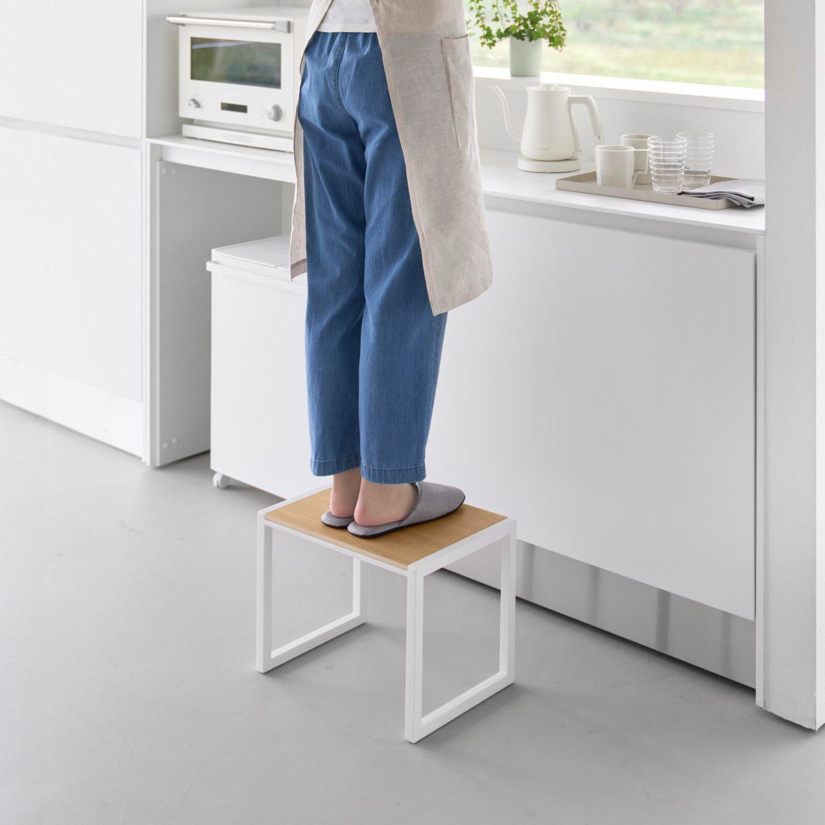 インテリアに馴染むスチールと木の組み合わせが美しい踏み台です。手の届きにくい吊り戸棚への収納や電球交換など高い位置での作業がしやすい高さ30cmです。足を乗せられるスペースが広く安定感があるので安心して使用できます。