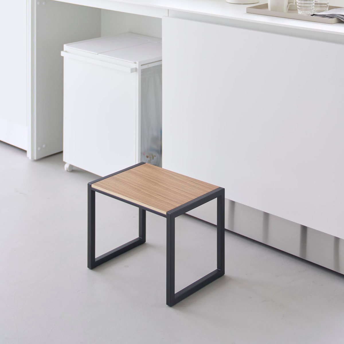 木製の天板がインテリアにも馴染むシンプルでスタイリッシュなデザインです。どこにおいても馴染むからこそ洗面、キッチン、リビングなどをはじめ、デザインを活かしてプランター台などにもおすすめです。