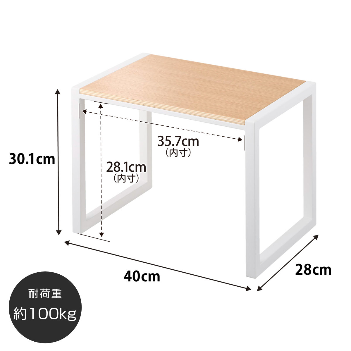 | サイズ | 約 幅40×奥行28×高さ30.1(cm) 天板下内寸:約 幅35.7×高さ28.1(cm) |