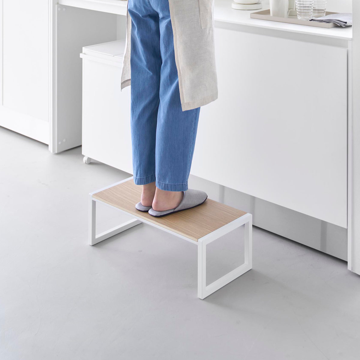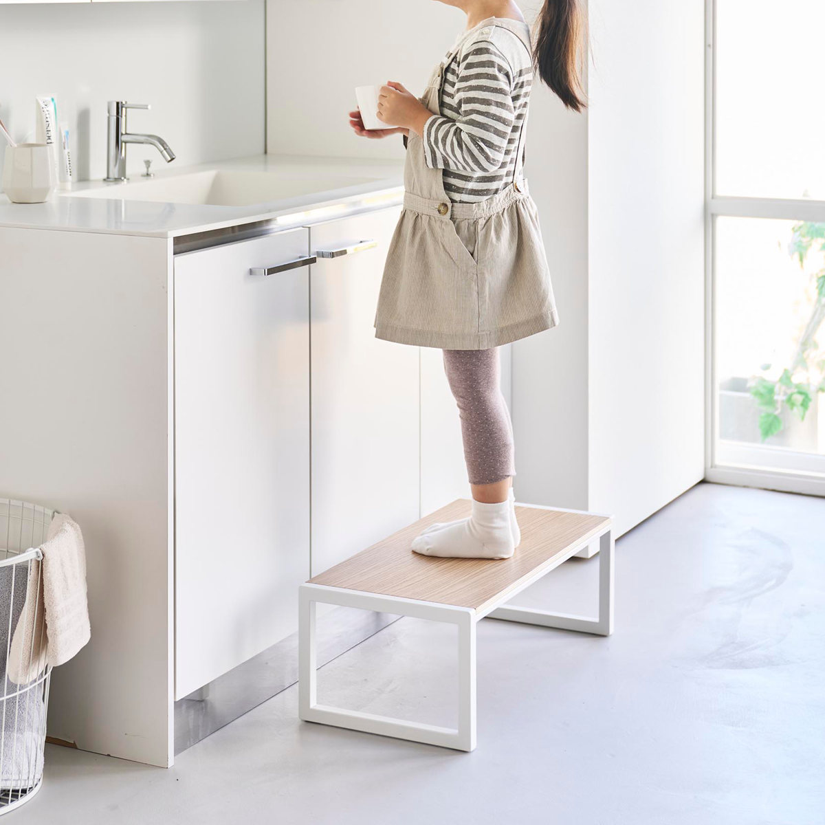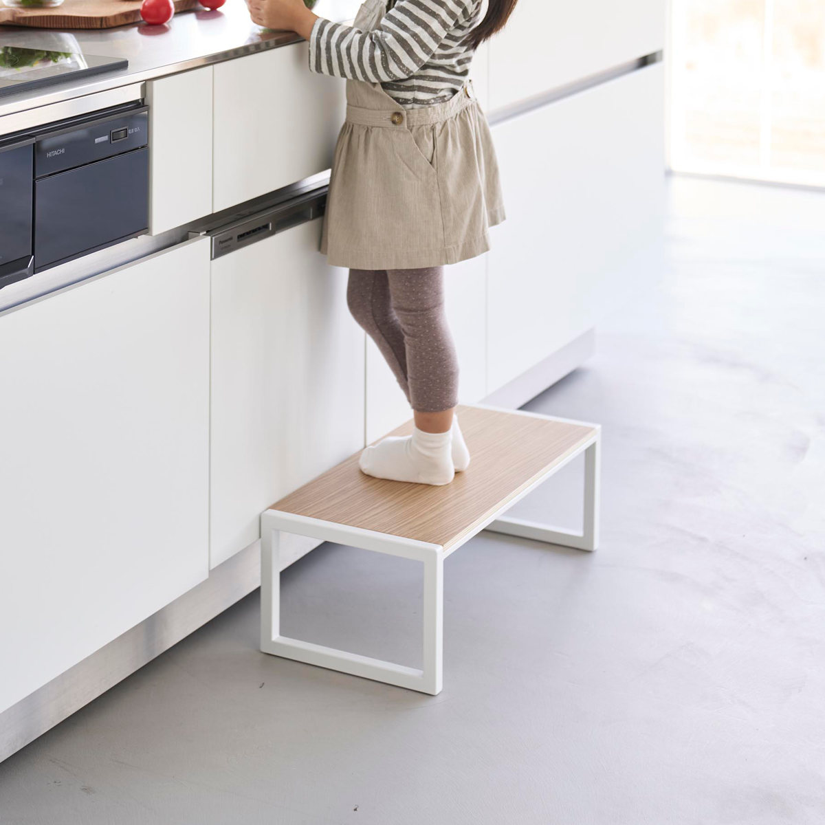 安定感があり、お子様や年配の方でも安心して使える天板の面積が広い横幅60cmのワイドサイズの踏み台です。インテリアに馴染むスチールと木の組み合わせが美しいデザインが魅力です。