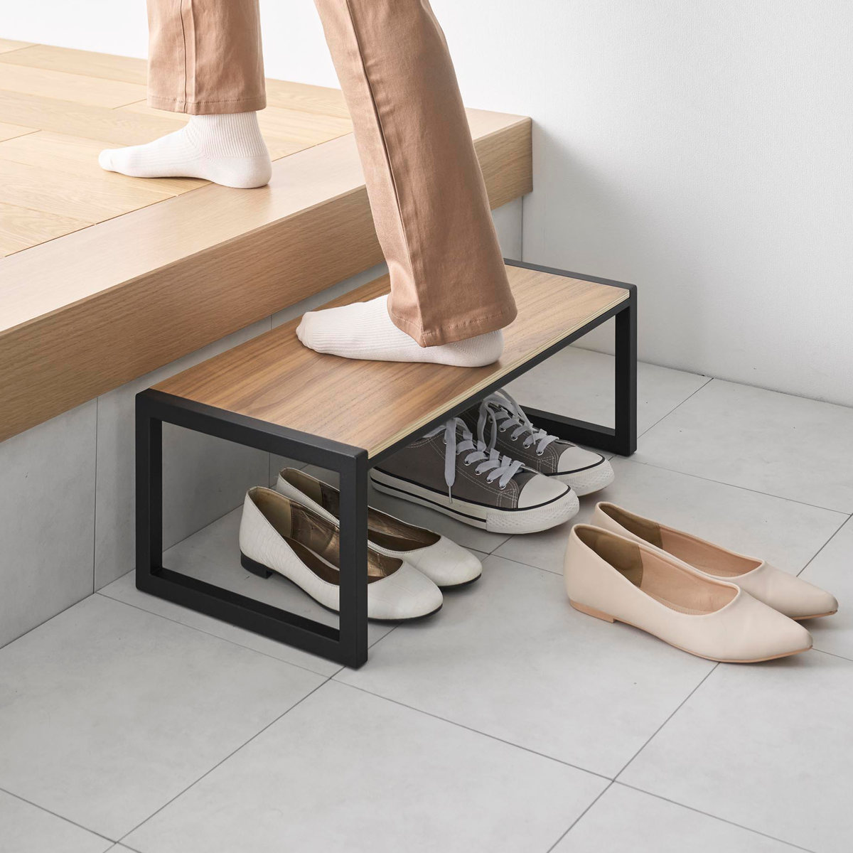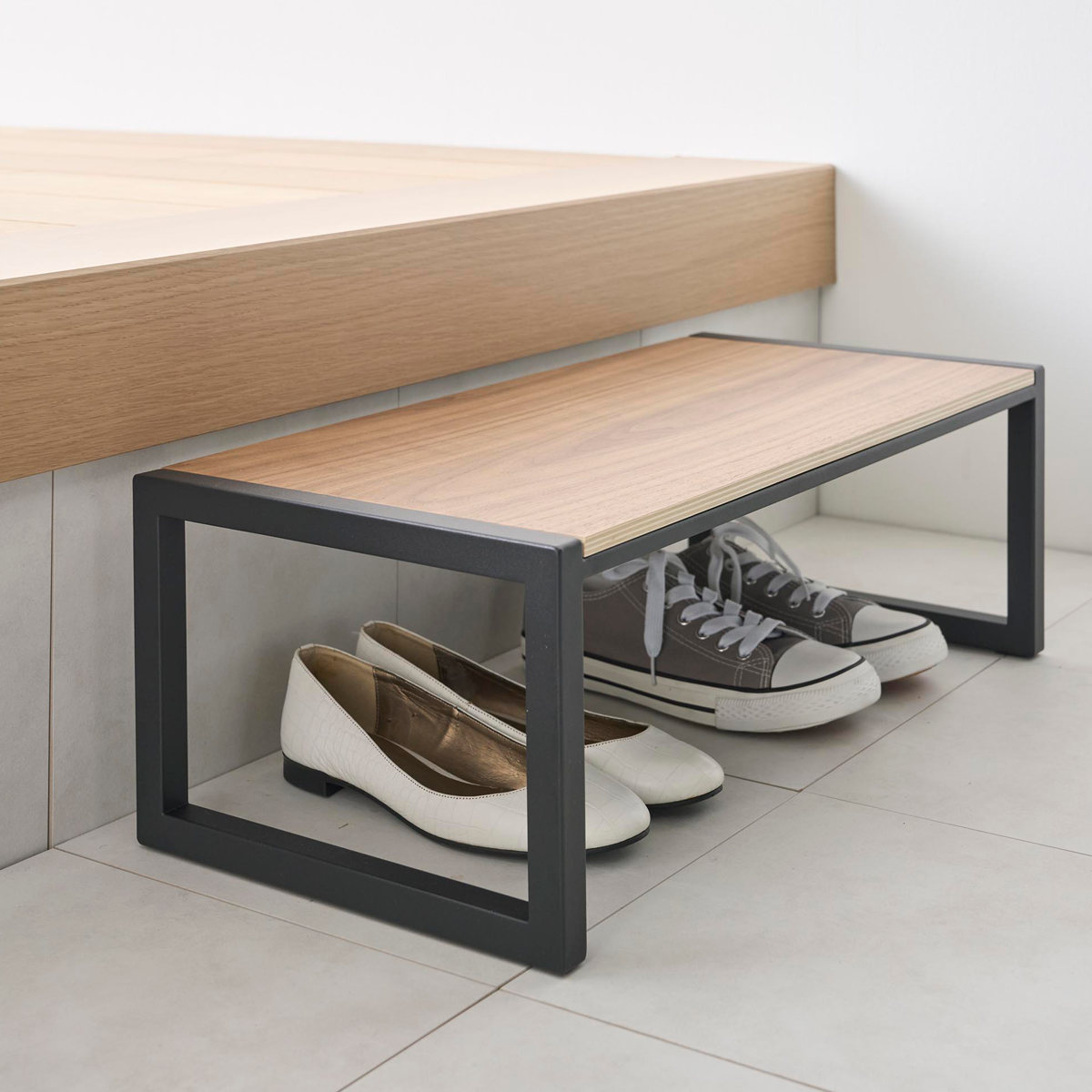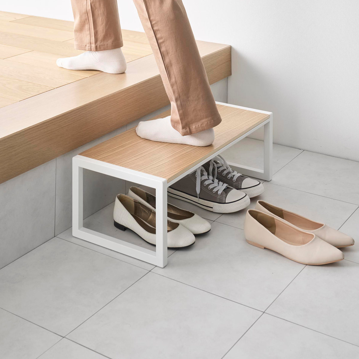 エントランスでは玄関のたたきに置いて昇降のサポートに使用できます。天板下は、シューズの収納スペースとして有効活用できます。