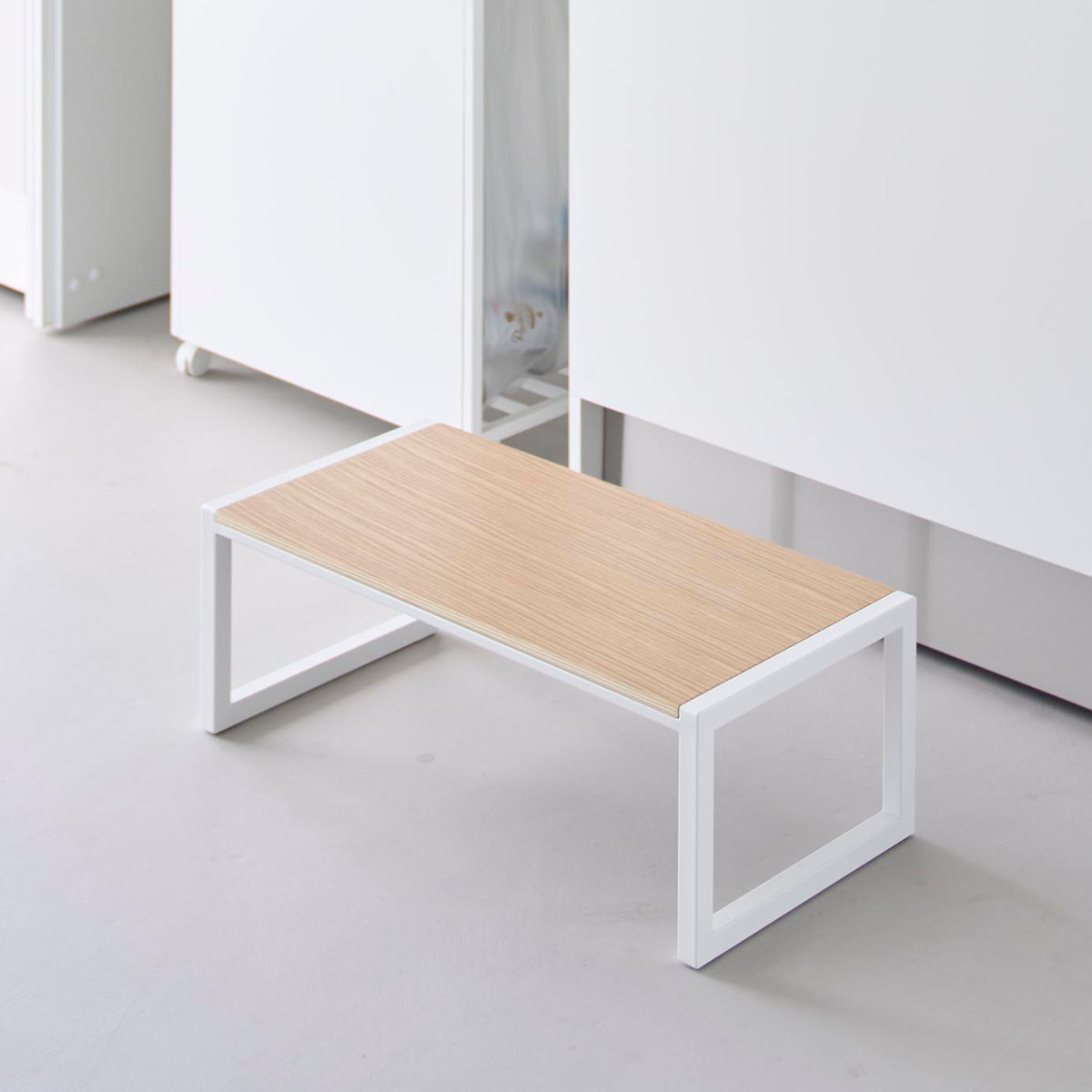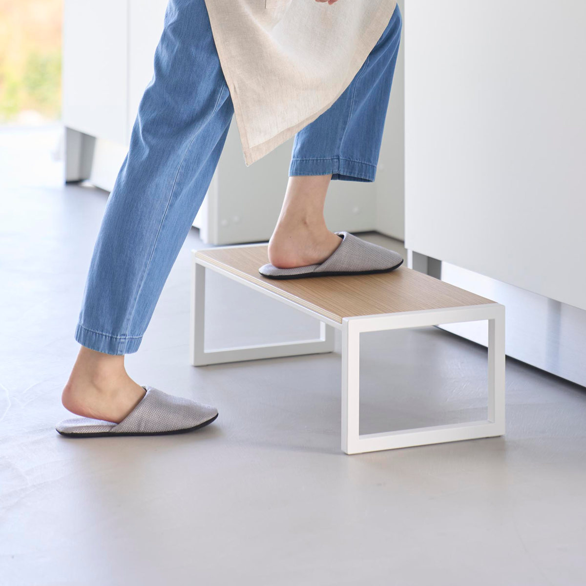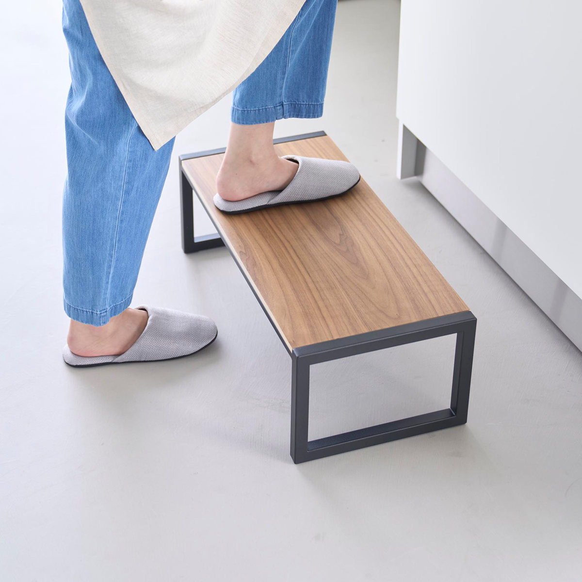 エントランスでは玄関のたたきに置いて昇降のサポートに使用できます。天板下は、シューズの収納スペースとして有効活用できます。