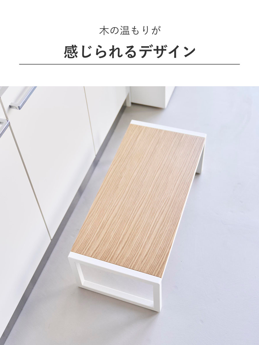木製の天板がインテリアにも馴染むシンプルでスタイリッシュなデザインです。どこにおいても馴染むからこそ洗面、キッチン、リビングなどをはじめ、デザインを活かしてプランター台などにもおすすめです。