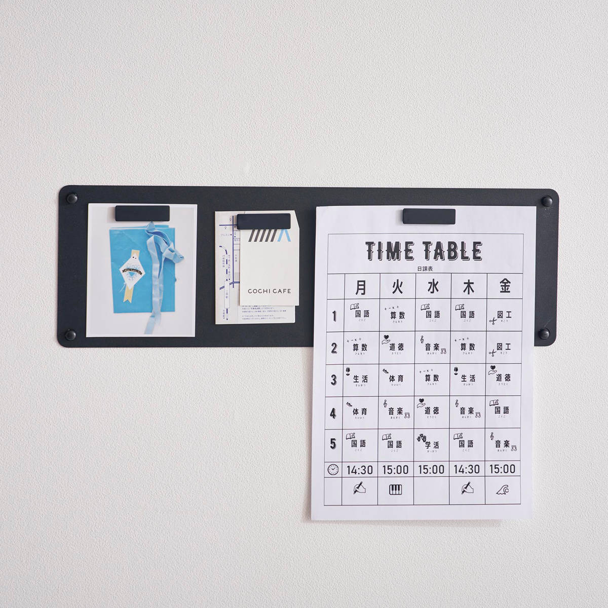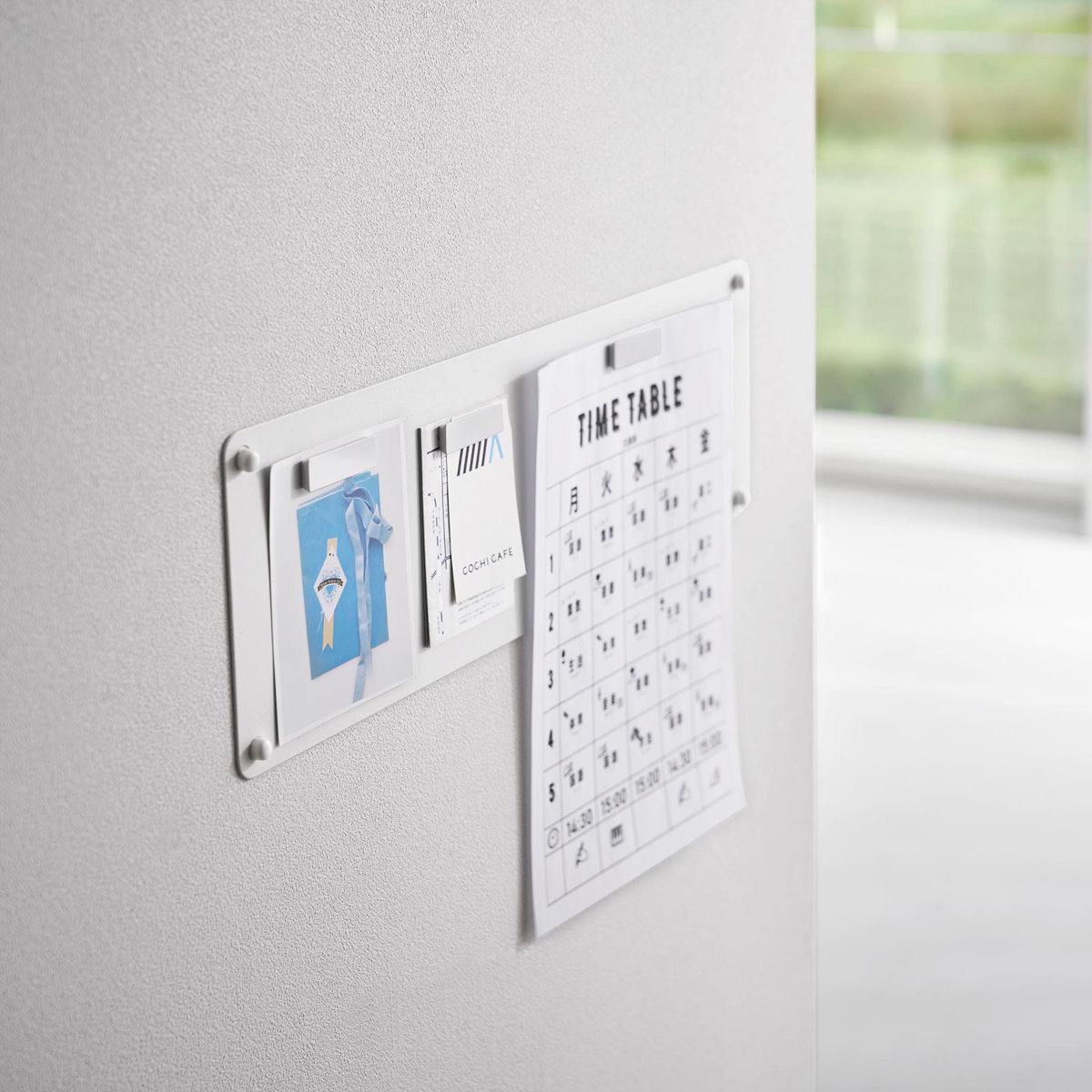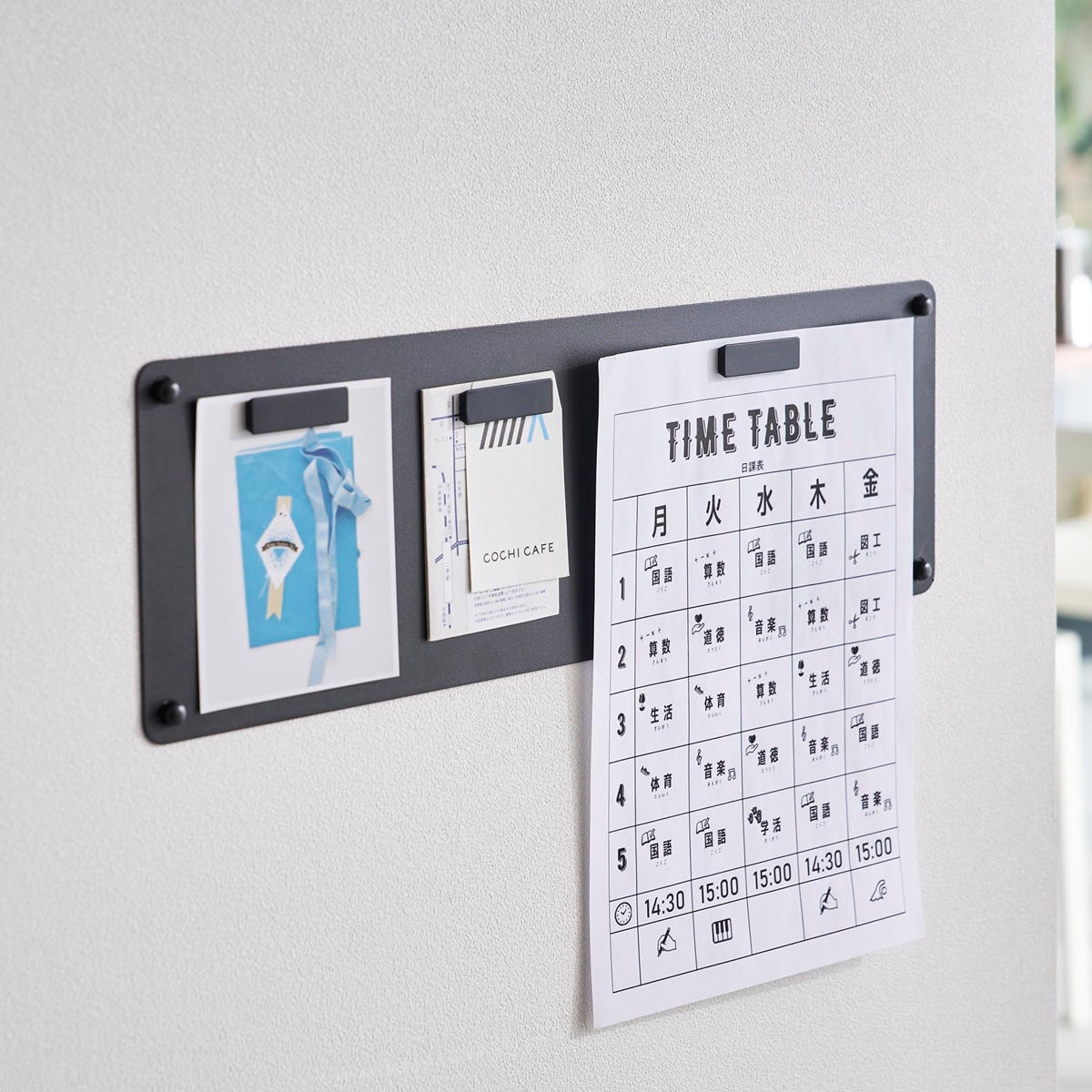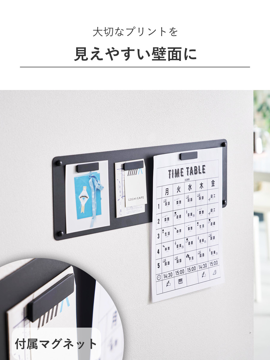 石こうボードピンで簡単に取り付けできるマグネット対応のスチール製プリントパネルです。見えやすい場所にプリントを管理することができます。マグネットが3個付属しています。