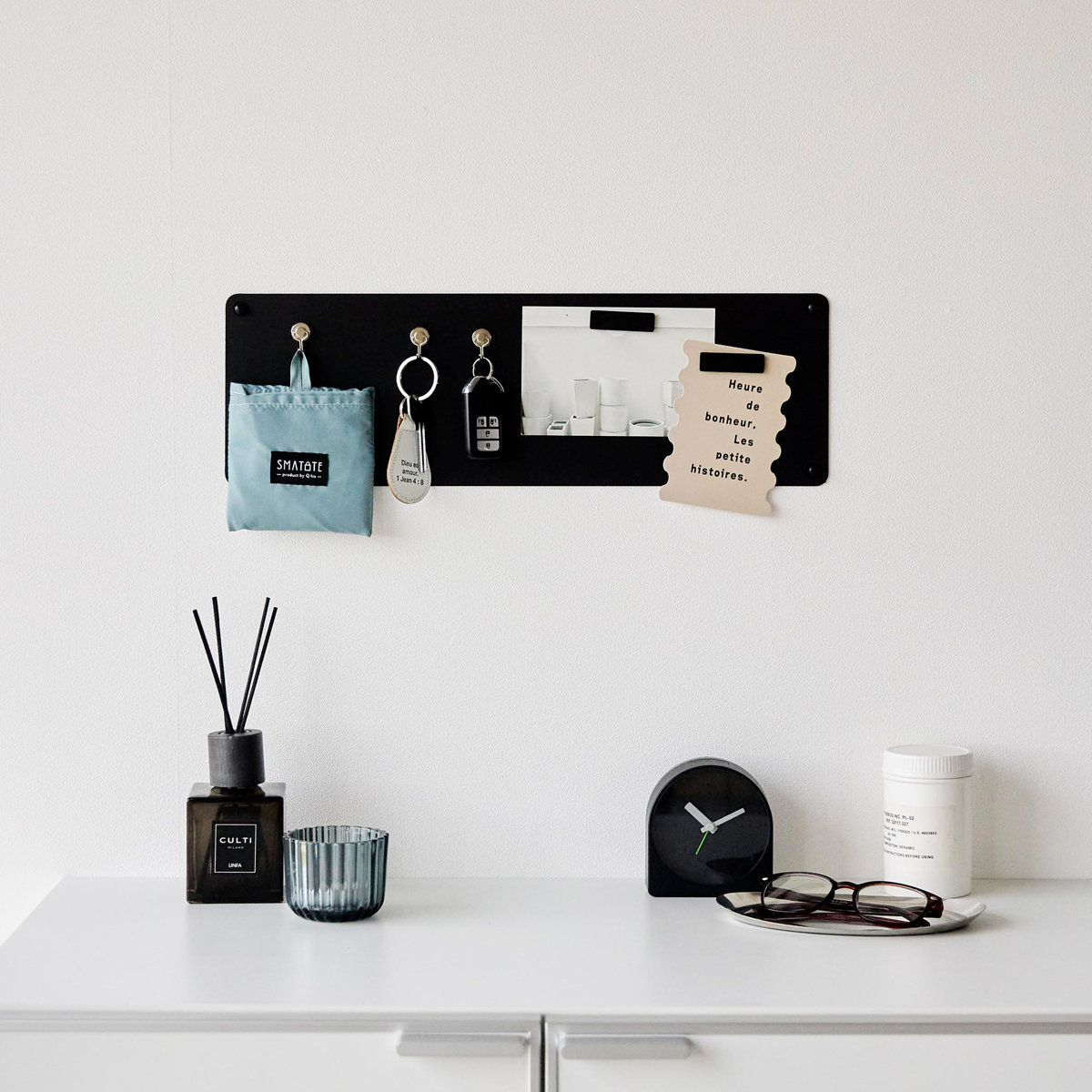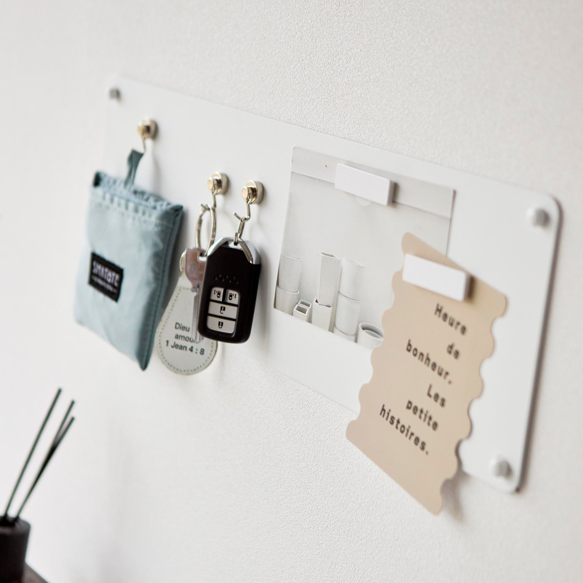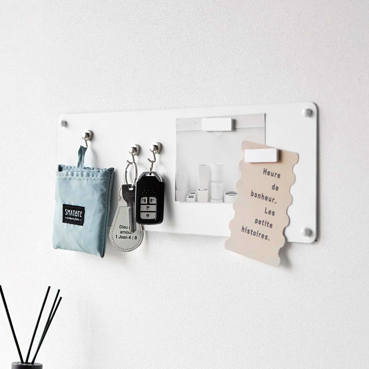 石こうボードピンで簡単に取り付けできるマグネット対応のスチール製プリントパネルです。見えやすい場所にプリントを管理することができます。マグネットが3個付属しています。