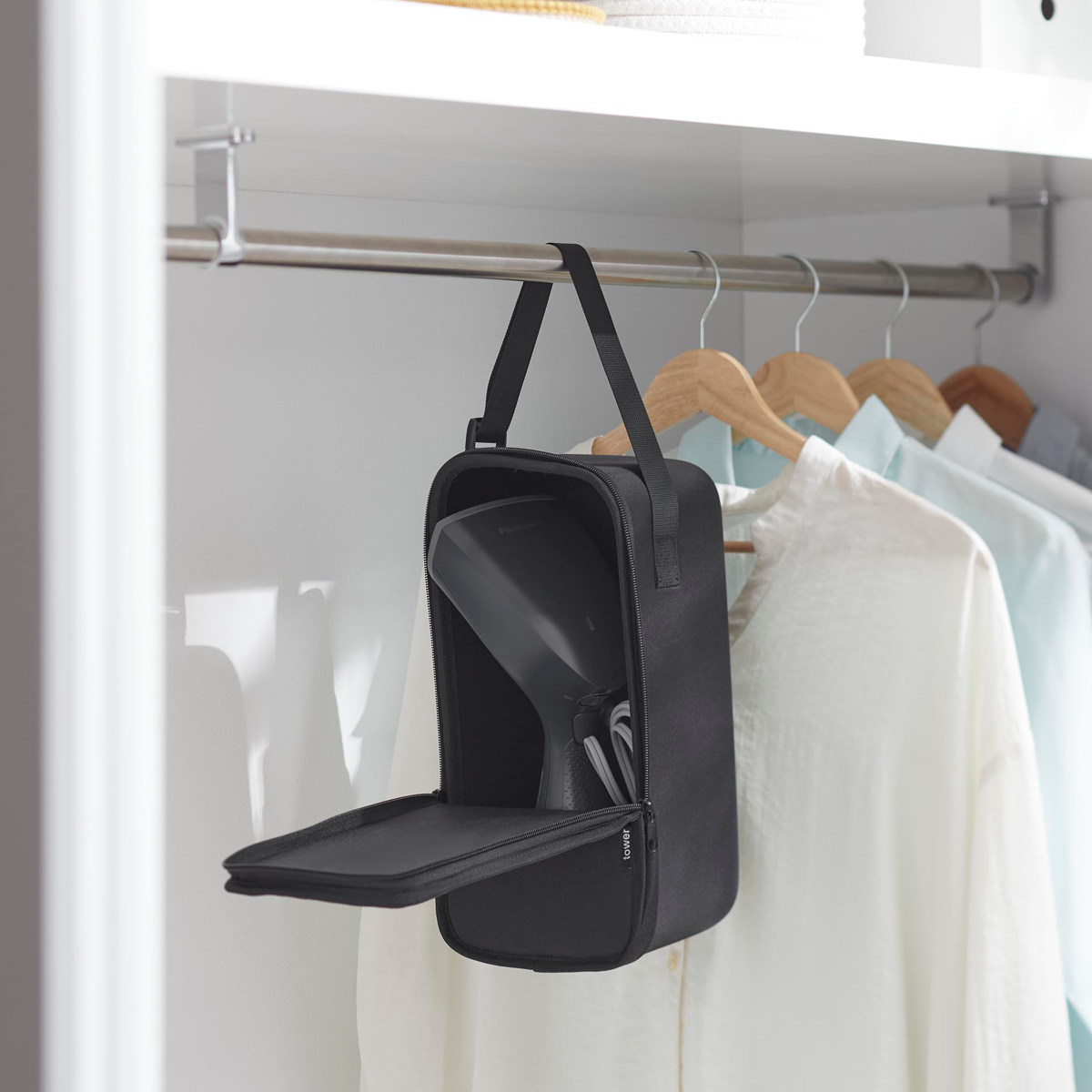 ちょっとした衝撃にも安心なセミハードケースを使用したスチームアイロン収納ケースです。前が大きく開くのでスチームアイロンの出し入れがスムーズです。朝の忙しい時でも使いたい時にサッと取り出せます。