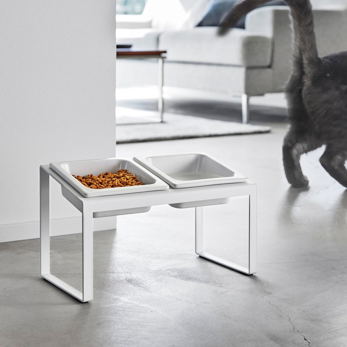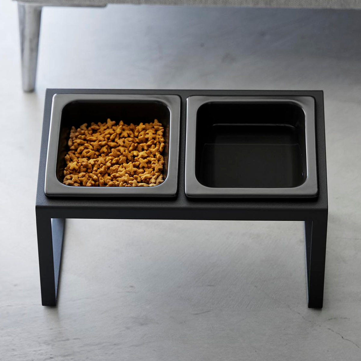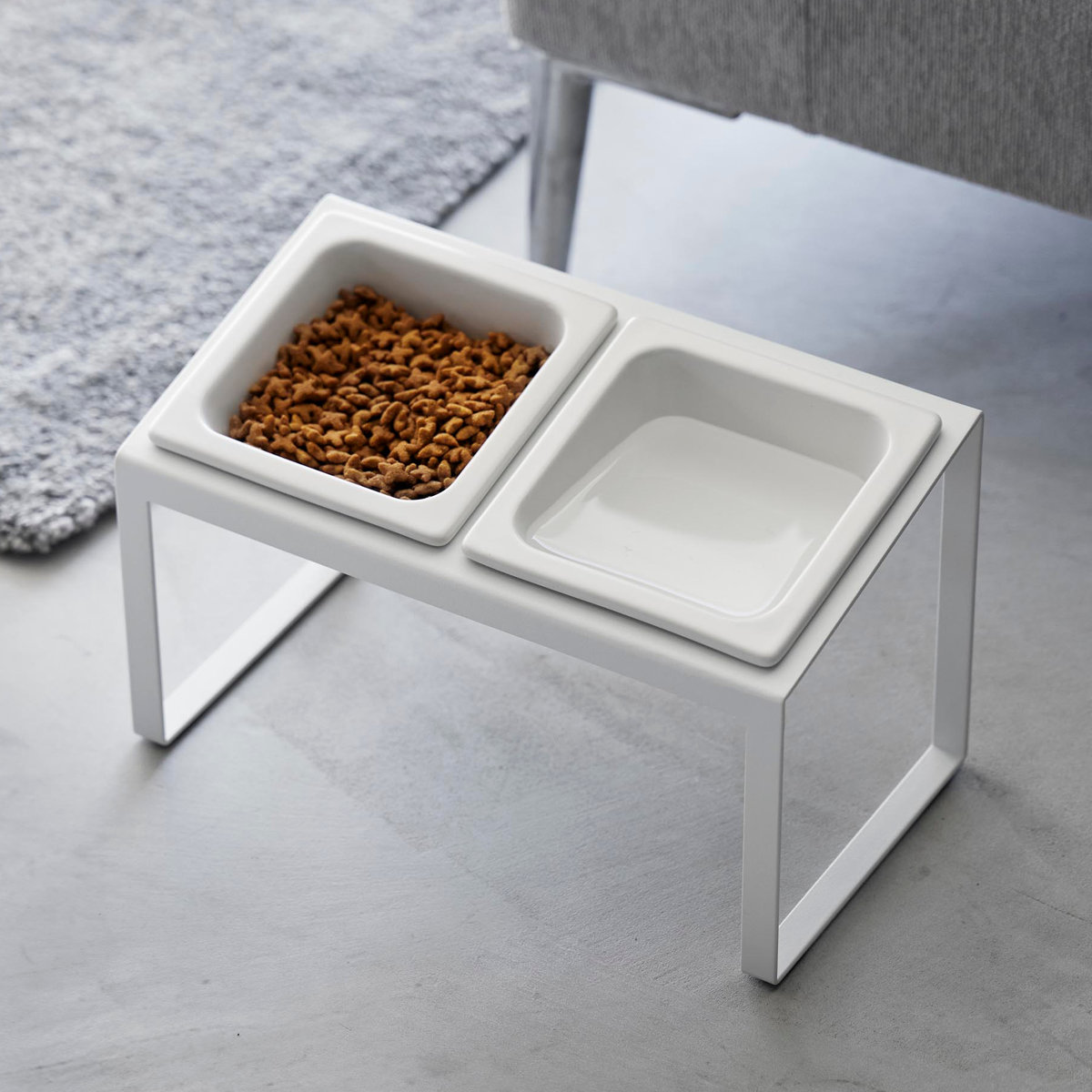 ボウルが2個とスタンドのセットです。フードとお水や2種類のフードなど自由に組み合わせて使えます。