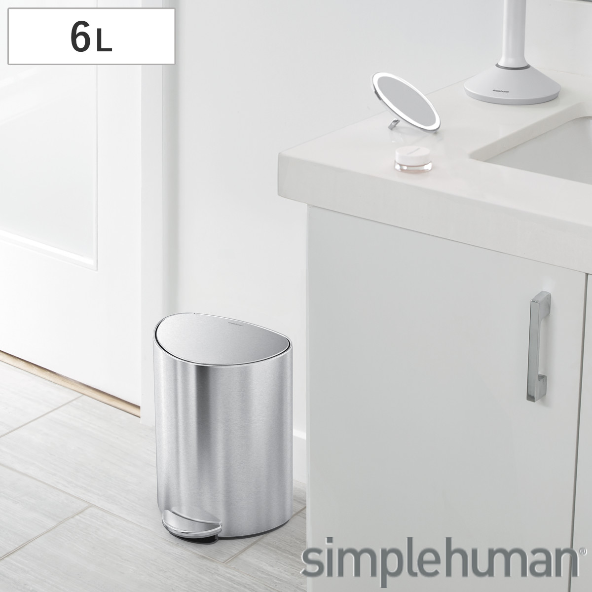 コンパクトな6Lサイズのゴミ箱です。デッドスペースが生まれにくい背面がフラットな形状なので、限られたスペースへの設置に最適です。シンプルで美しいフォルムは、空間に調和し、インテリアの一部のようにスタイリッシュな雰囲気を演出します。