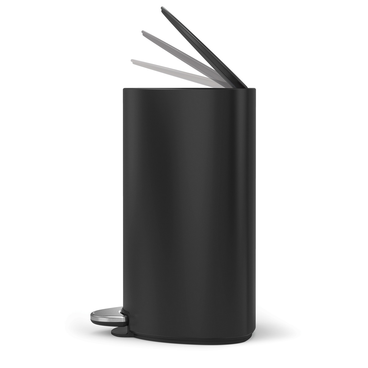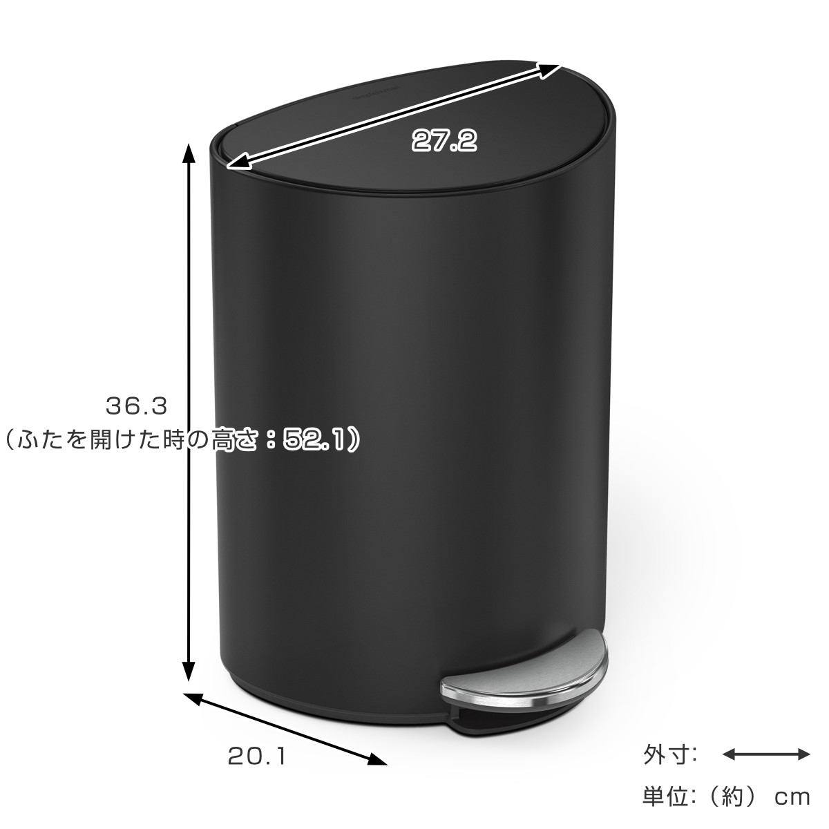 コンパクトな6Lサイズのゴミ箱です。デッドスペースが生まれにくい背面がフラットな形状なので、限られたスペースへの設置に最適です。シンプルで美しいフォルムは、空間に調和し、インテリアの一部のようにスタイリッシュな雰囲気を演出します。