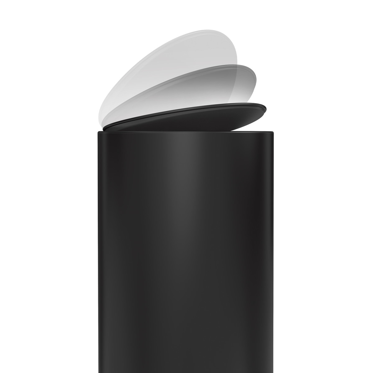 ふたには特許取得済みのリッドショックテクノロジーを採用しており、スムーズで静かに開閉します。ゴミ箱を壁際に置いても、フタがなめらかに開くようになっています。