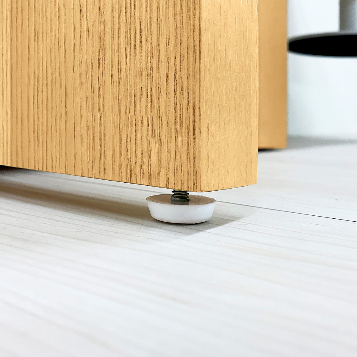 床の凹凸によるガタツキや上がり框と高さの微調整が可能です。
