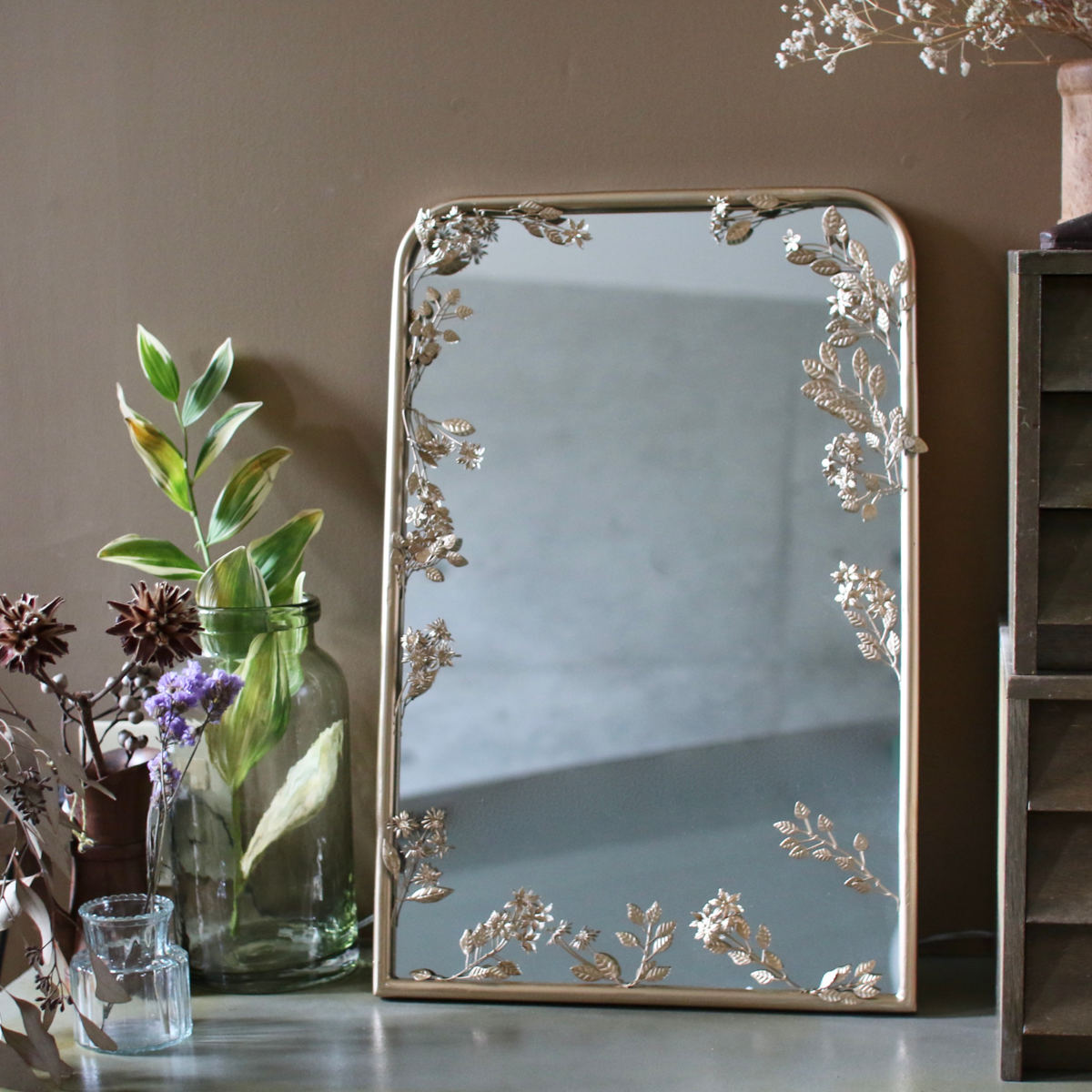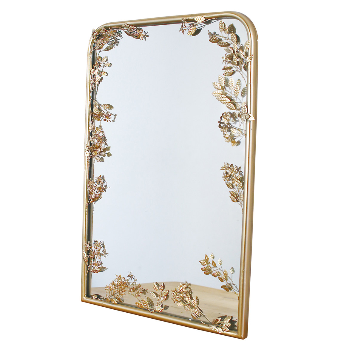 花と葉の繊細な装飾が上品で美しい壁掛けミラー