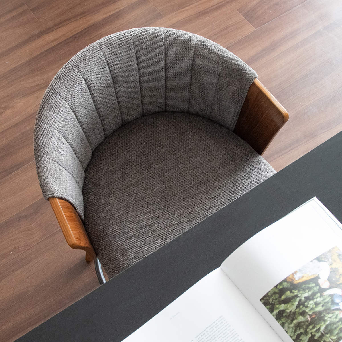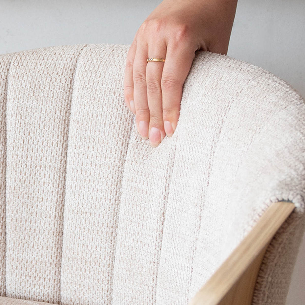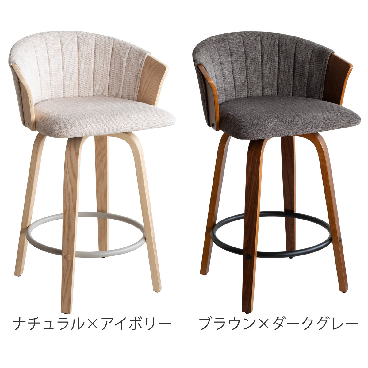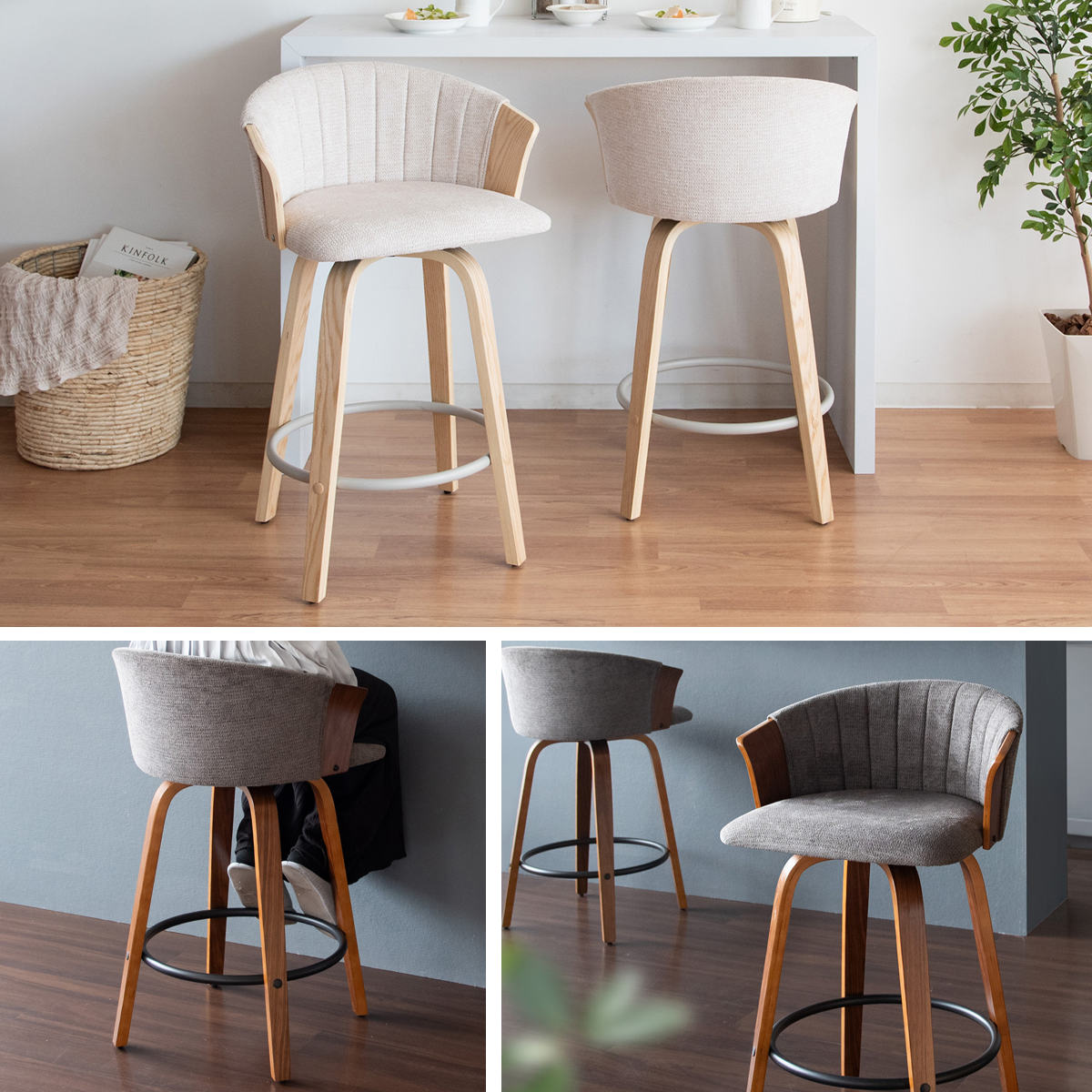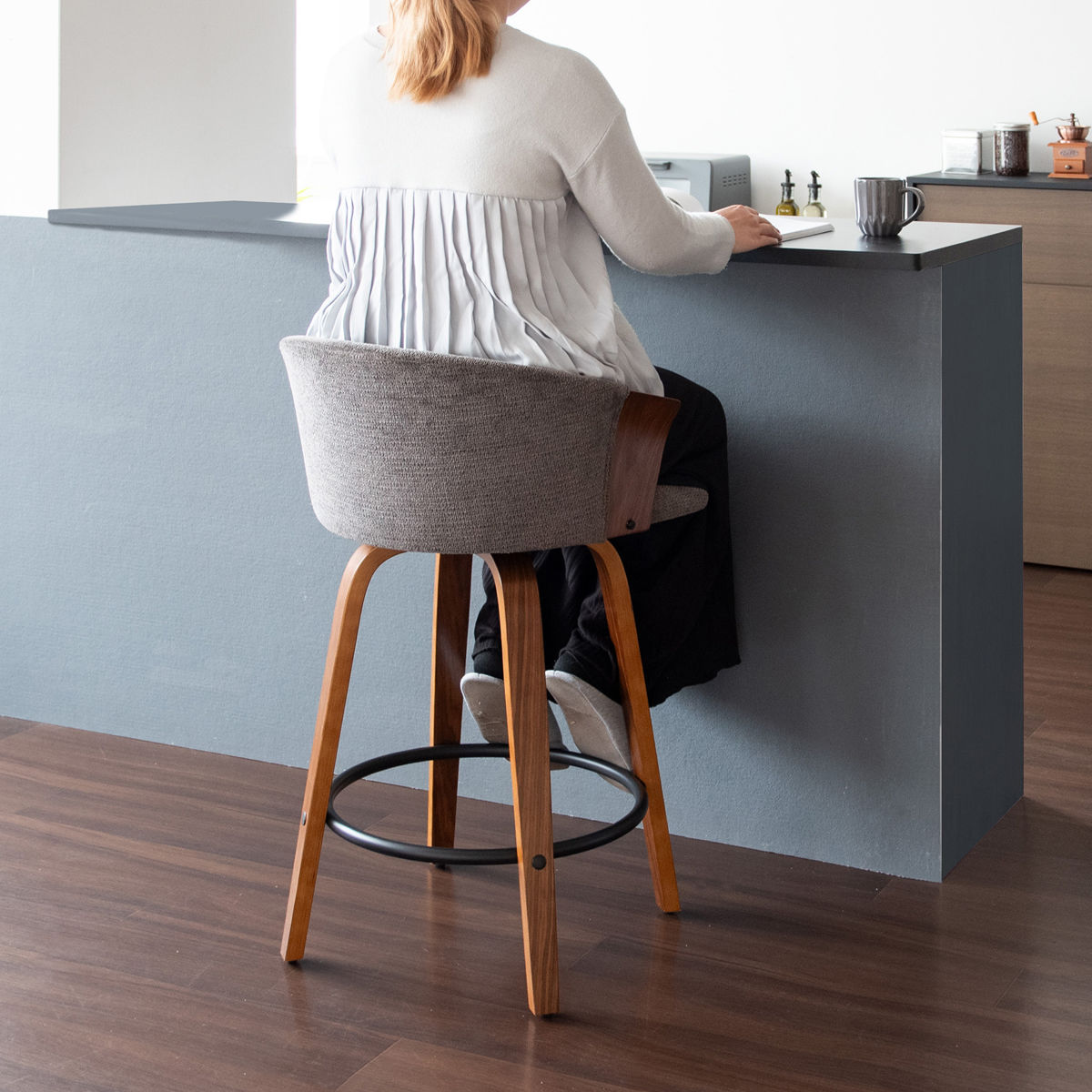 身体を包み込む背もたれとやさしいファブリックが特徴のカウンターチェアです。広めの座面設計と背中やお尻にフィットする曲線デザインの背もたれで、ゆったり快適にお座りいただけます。