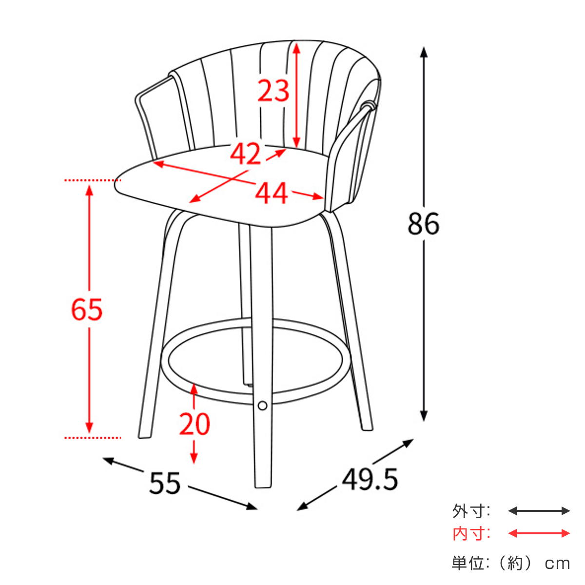 | サイズ | 約 幅55×奥行49.5×高さ86(cm) 座面高:約 65(cm) |