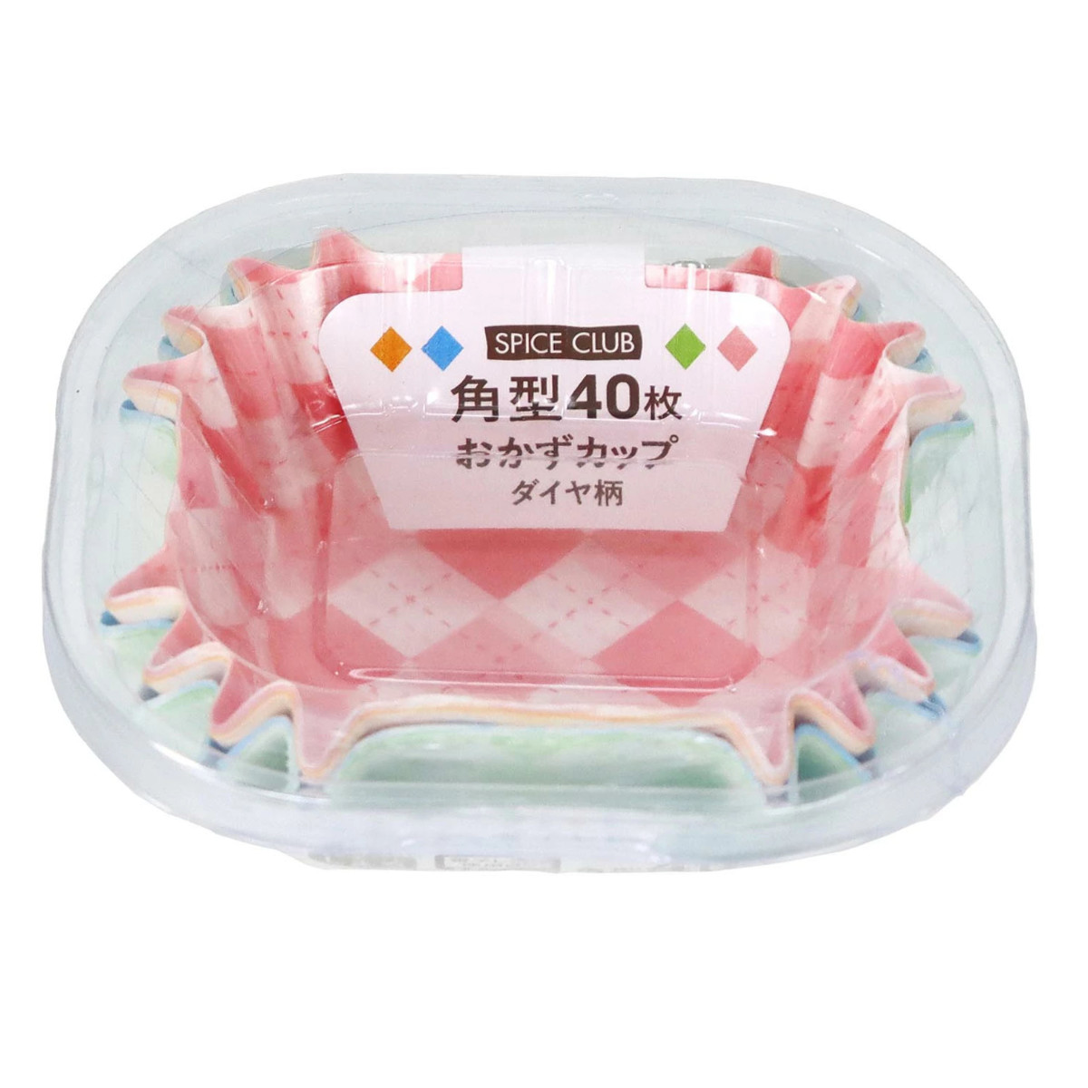 お弁当のおかずを入れるのに最適なおかずカップです。カラフルなダイヤ柄がお弁当を彩ります。電子レンジで使えるので便利です。カラーはピンク・ブルー・オレンジ・グリーンの4色入っています。40枚入りです。