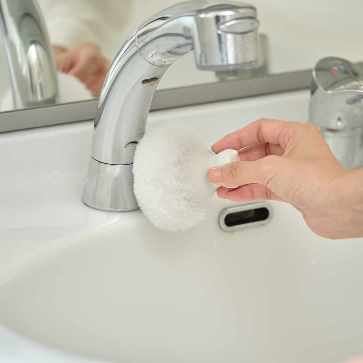 洗剤を使わずに水だけで汚れが落ちるブラシです。持ち手付きなので握りやすく、掃除中も手が濡れません。