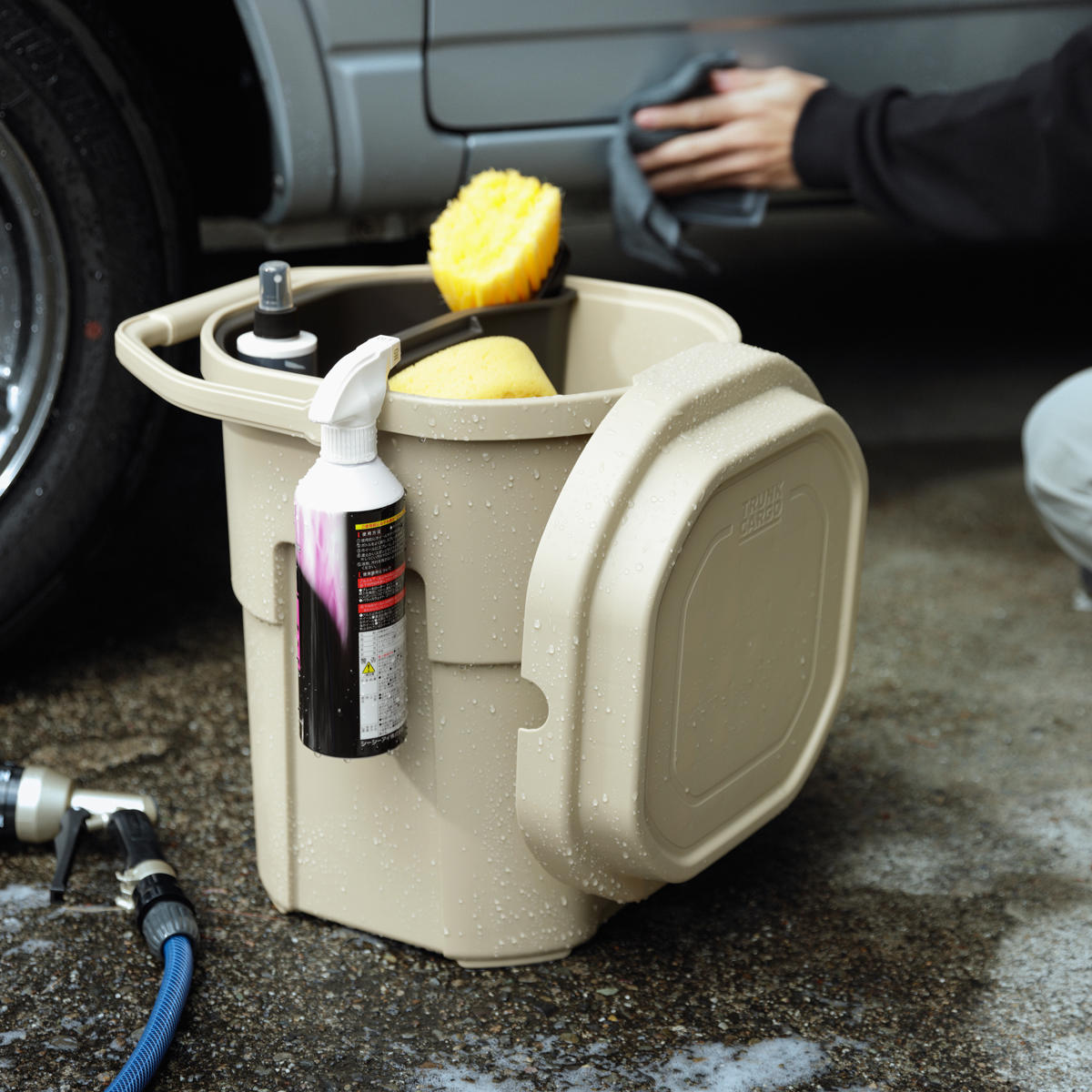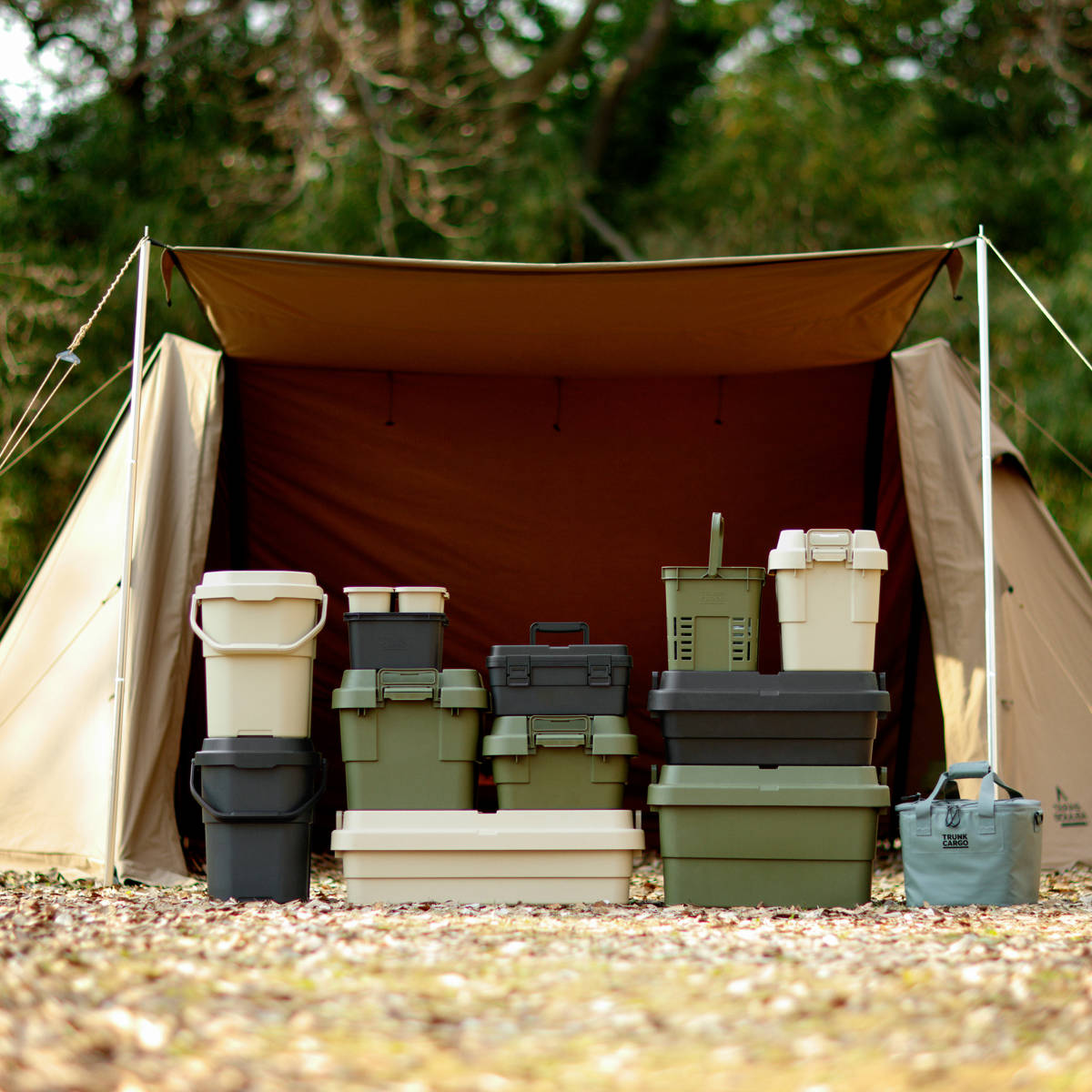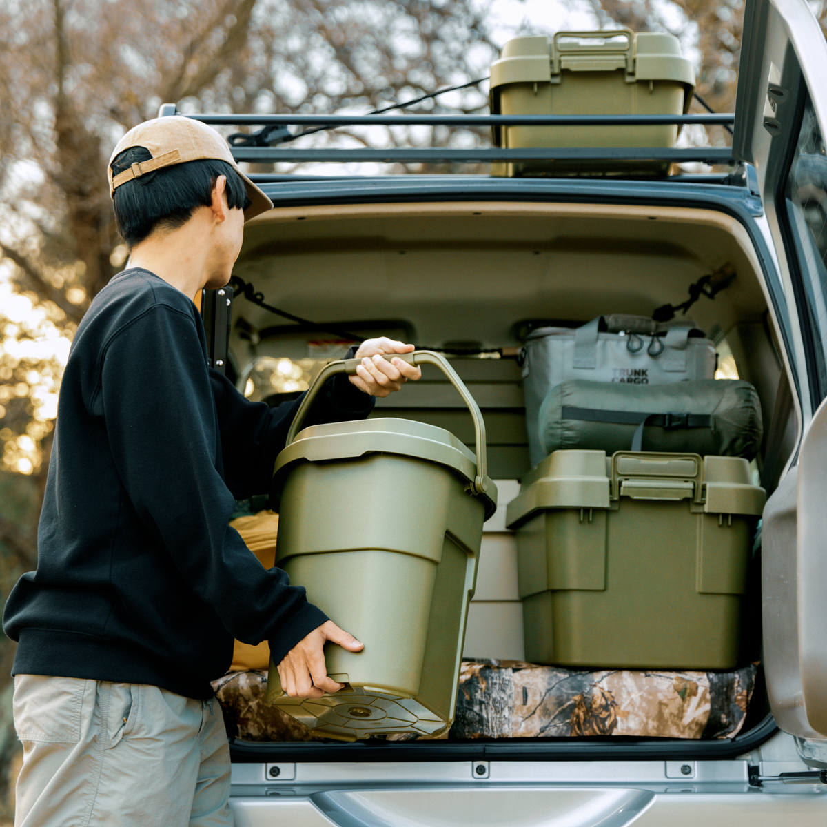 キャンプシーンでは薪入れやスツール・簡易テーブル・即席ゴミ箱として、釣り・ガーデニング・洗車の道具など、用途に合わせた様々な使い方ができます。