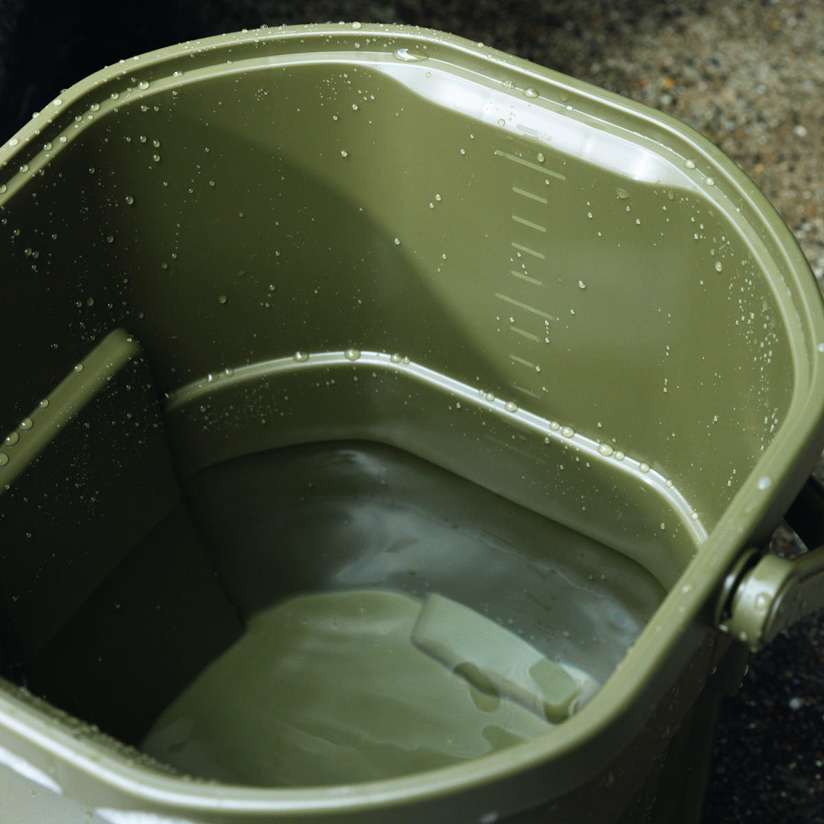 本体内側には1Lごとに目盛りが付いており、適正な水量を測ることができます。底部分には水汲み・排水をより容易にする持ち手が付いています。