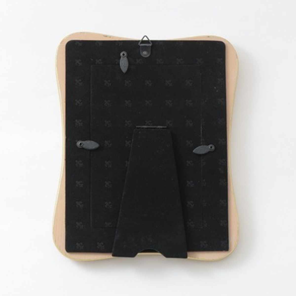 フォトスタンドとして立てて置くだけでなく、壁掛け用フックが付いているので壁にも取り付けられます。